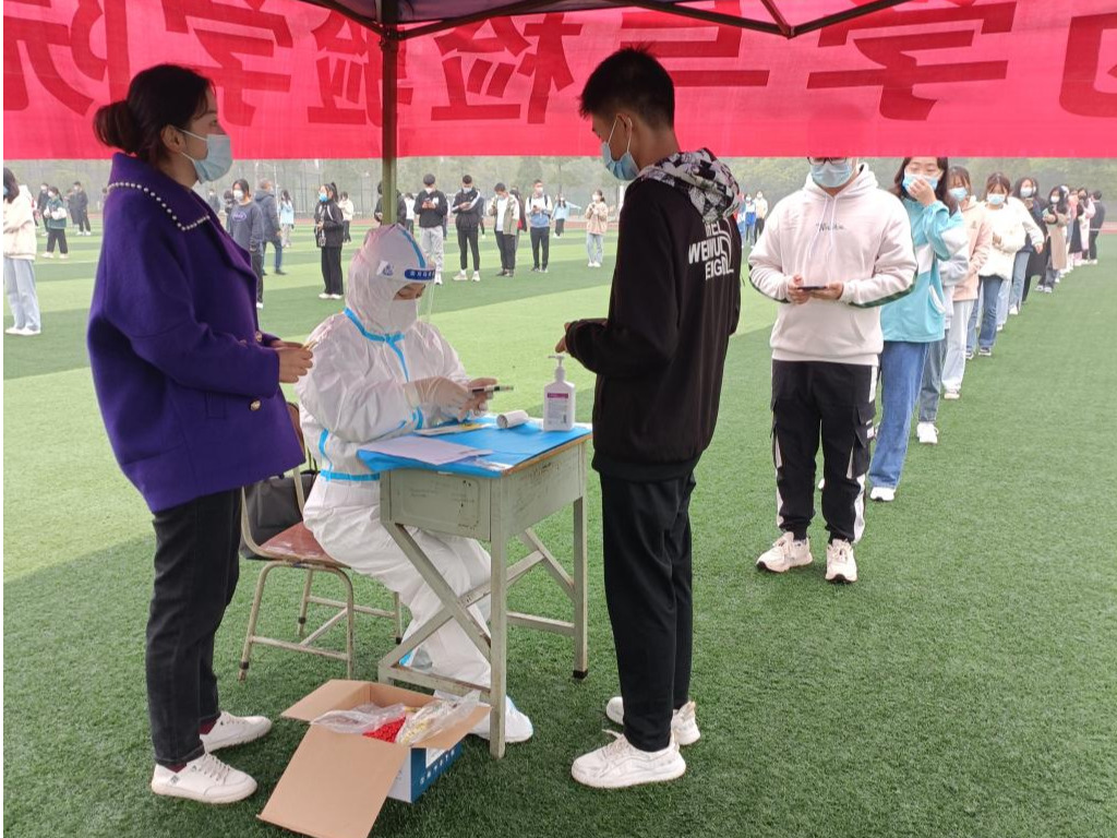 10月11、12日,护理学院周晓琴,杨宗莉,周良燕、廖君四位教师,早早就来到名山经开区校区,开始进行核酸检测信息录入工作。她们为所有返校学生采集核酸,累得浑身湿透,没有任何抱怨,认真完成录入工作。疫情的紧张、紧急让她们忘却了疲惫,她们斗志昂扬,投身战“疫”,无怨无悔。
