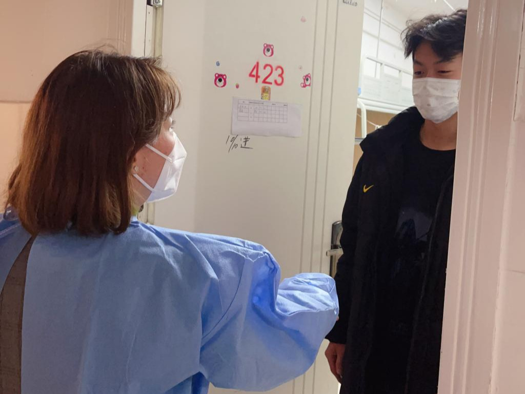 10月11日,宣传统战部新进教师周琨瞒着腰部扭伤的情况,加入首批教师志愿服务队,进驻育才路校区健康观察点,积极参与到为学生配送三餐、收拾生活垃圾的志愿服务中,10月12日—14日,宣传统战部新进教师鲁玉连续三天奋战在育才路校区健康观察点,除完成志愿服务工作外,还要见缝插针地采写新闻信息。她们虽为“新兵”,却敢于冲锋在前;虽入职不久,却毅然投入战“疫”。她们是雅职青年教师的缩影。