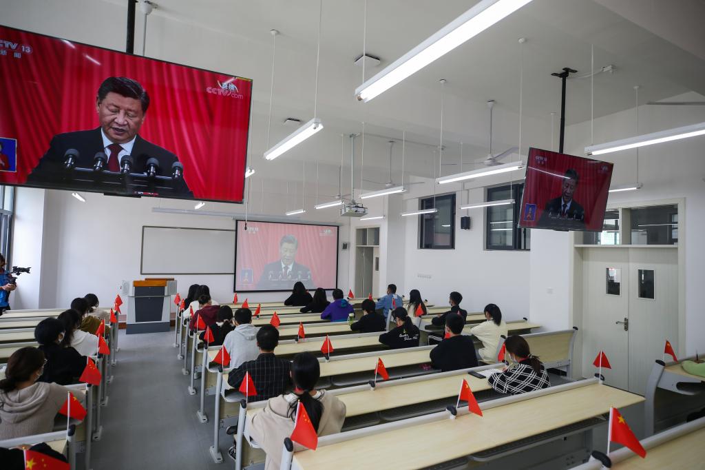 今天上午10点,中国共产党第二十次全国代表大会开幕会在北京人民大会堂隆重开幕,习近平代表第十九届中央委员会向大会作报告。学院组织全体党政班子成员、中层干部、党支部书记、人大代表、政协委员、民主党派负责人、无党派人士代表,各党总支(直属党支部)组织班团干部、入党积极分子代表共700余人按疫情防控要求分三校区在各集中收看点进行收看,其余师生在寝室、家中通过电视、网络等多种方式自行收听收看了开幕会盛况。