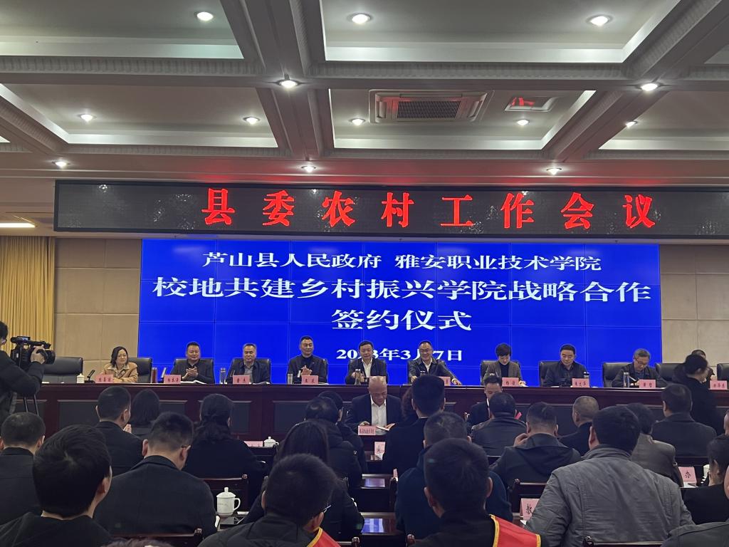 3月7日,芦山县人民政府举行县委农村工作会议。会上,芦山县政府与学院签订了校县合作协议,正式成立雅安乡村振兴学院芦山分院。学院党委委员、副院长樊正康,继续教育与国际交流处负责人、芦山县全体班子成员参加签约仪式。双方在校地合作、共谋发展,进一步发挥双方优势,助力地方经济社会发展等方面达成共识。
