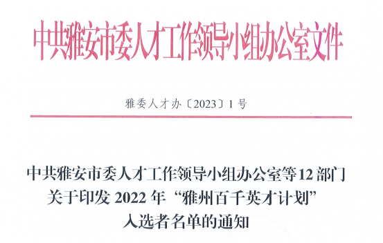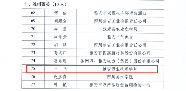 为加快培养造就一支转型发展、创新发展、跨越发展急需紧缺的高层次人才队伍,市委人才办开展2022年“雅州百千英才计划”评选工作,经组织推荐、综合评选、现场答辩,学院3人成功入选2022年“雅州百千英才计划”。教师雷厉、唐翠微入选“雅州名师”,教师王飞入选“雅州菁英”。