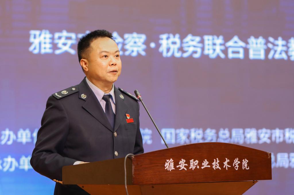 学院党委委员、副院长樊正康,名山区人民检察院党组成员、副检察长辛瑞,名山区税务局党委书记、局长王雅各,学院相关部门中层干部,大学生普法志愿者及300余名学生代表参加仪式。