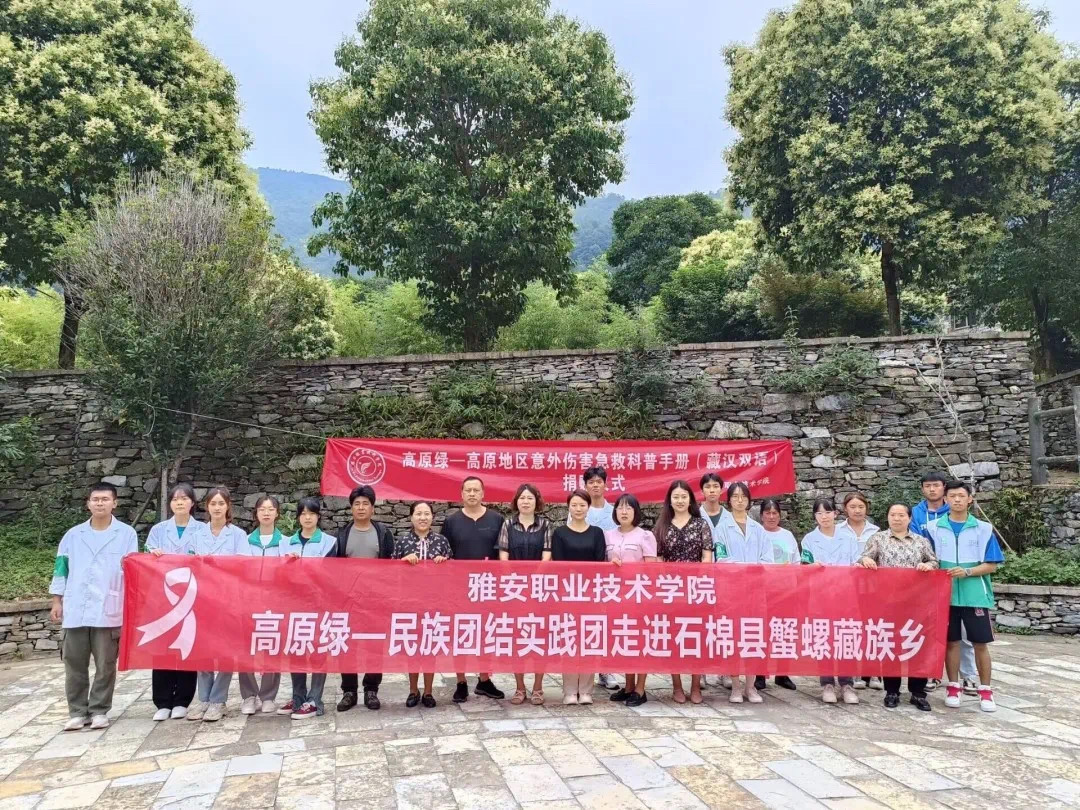 高原绿——高原地区意外伤害急救科普团致力于通过临床医学院绿丝带志愿服务团队(四川省首届志愿服务项目金奖团队、第九届四川省青年志愿服务优秀项目团队、雅安市优秀红十字志愿服务团队)医学生到高原地区推广高原地区意外伤害急救知识,结合学院教师主编、四川民族出版社出版的《高原地区意外伤害急救手册(藏汉双语)》图书和相关宣传资料,从意外伤害、动物伤害、户外伤害、饮食生活、紧急事故几个版块向高原地区用普通话普及高原昏迷、冻伤、晒伤、溺水、出血、骨折、狗咬伤、毒菌中毒、急性高原反应等高原意外伤害急救知识。通过团队集中奔赴藏乡,链接学院藏族医学生返家乡接力开展活动的方式,帮助高原地区藏民了解、掌握急救知识。项目团队曾获2022年四川省暑期三下乡重点团队、2022年四川省大学生“返家乡”社会实践活动优秀品牌项目。