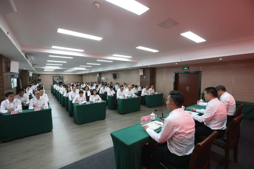9月18日上午,Beat365唯一官方网站学习贯彻习近平新时代中国特色社会主义思想主题教育读书班在青年路校区集雅厅开班。省委主题教育第十一巡回督导组副组长赵宇同志到会指导,学校党委书记李春模作开班讲话,党委副书记、校长黄诚主持开班式。