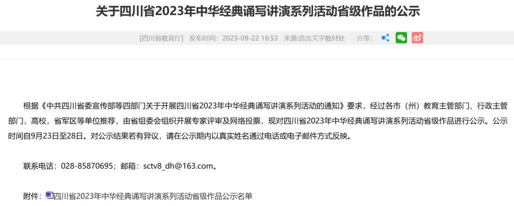 近日,四川省教育厅对四川省2023年中华经典诵写讲演系列活动省级获奖作品进行了公示,学院教师夏椰柯“讲经典”作品《清平乐 年年雪里》获得大学教师组一等奖。