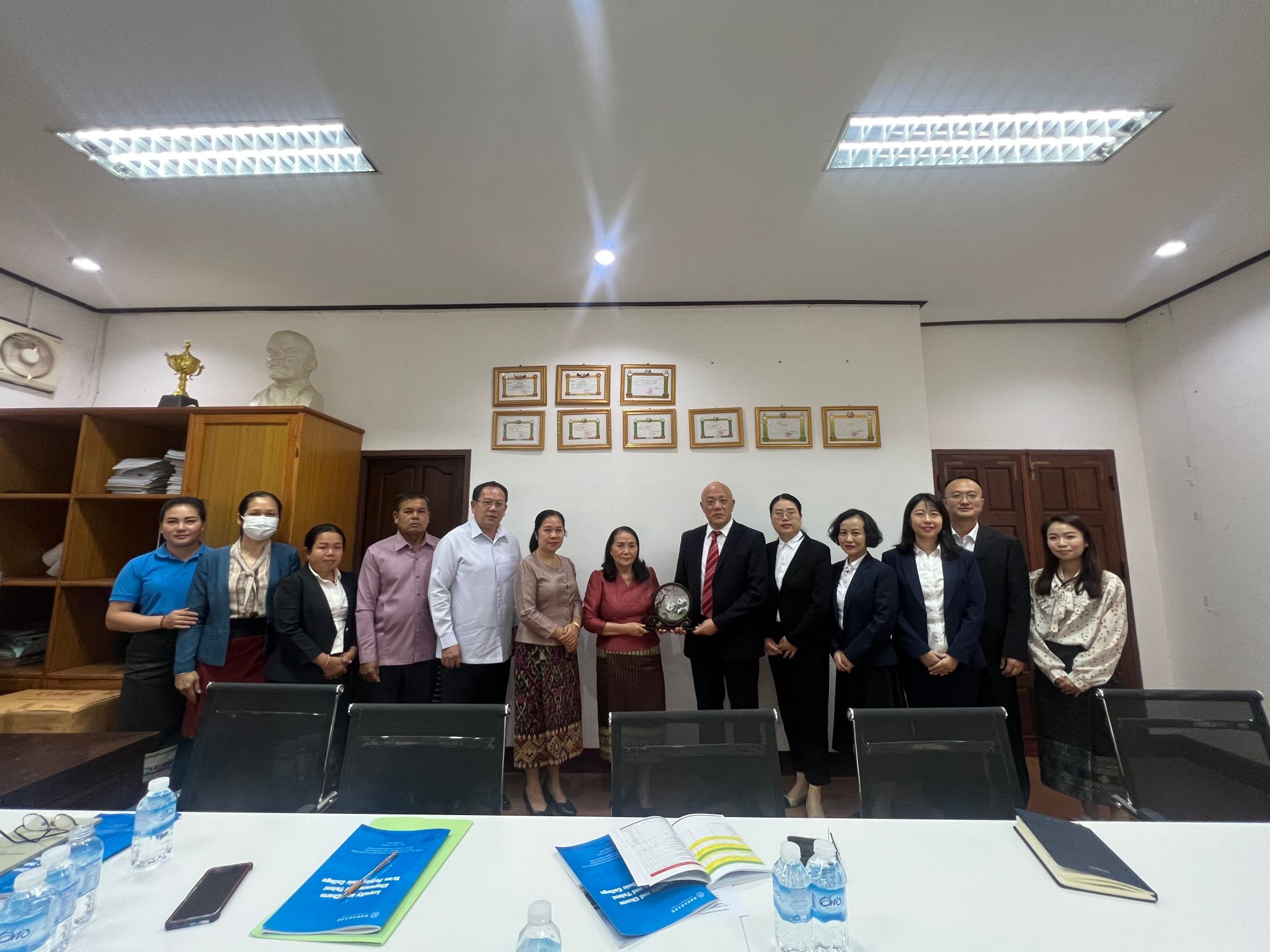 在老挝教育与体育部学生事务司、老挝理工学院、老挝熊猫汉语培训学校、若愚创投(老挝)独资公司交流过程中,双方就留学生人才培养、汉语培训、共建专业、教育培训等合作事宜开展深入研讨交流。
