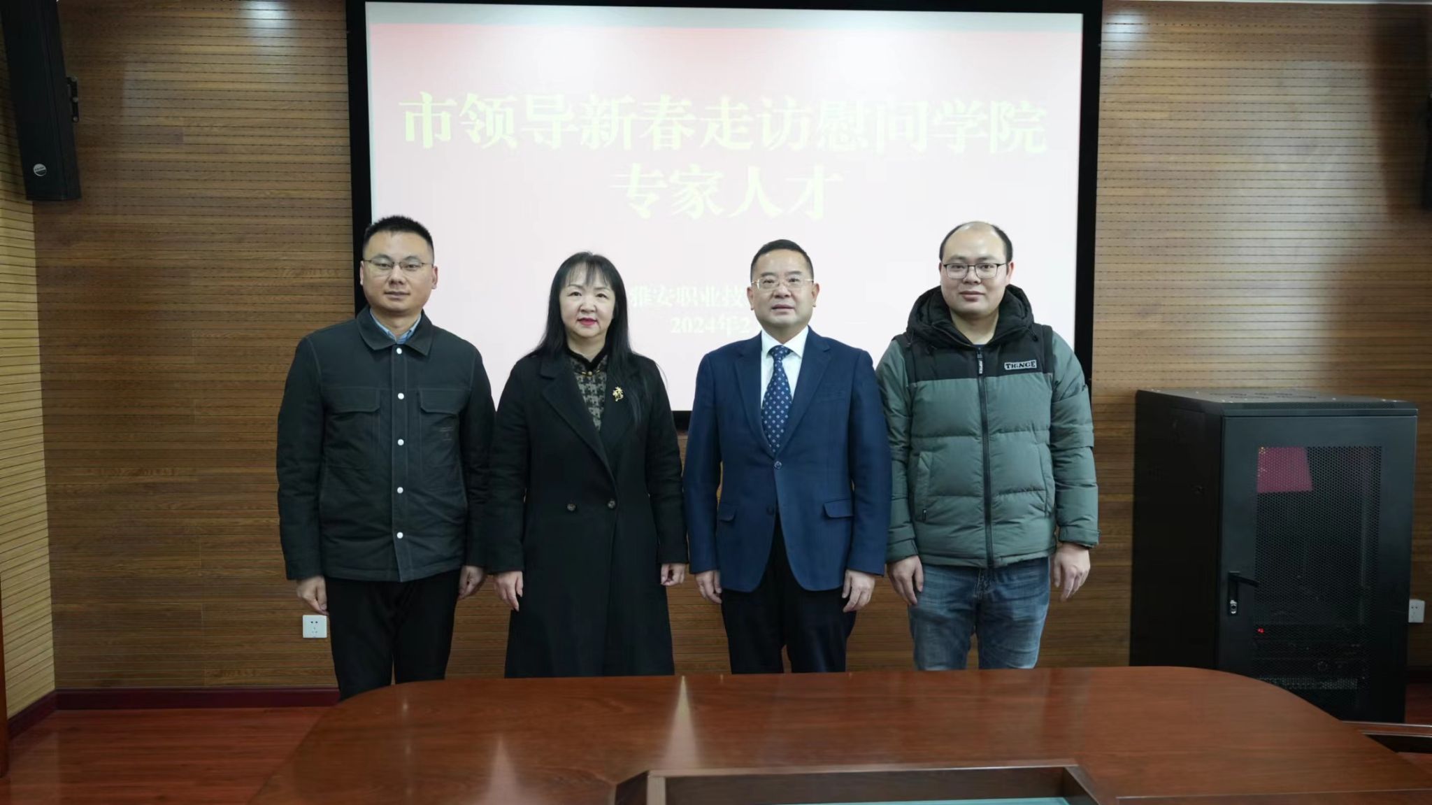 春节前夕,市政府副市长郑胡勇、市政协副主席李阳军分别走访慰问学院专家人才,向他们致以节日问候和新春祝福。药物化学教授、博士、雅州创新菁英梁大伟,享受政府特殊津贴专家、全国青年岗位能手、四川工匠、数控专业教师胡月刚和中医学教授、雅州名师杨志伟分别接受慰问。学院党委常委、副院长付洪涛和樊正康分别陪同慰问。