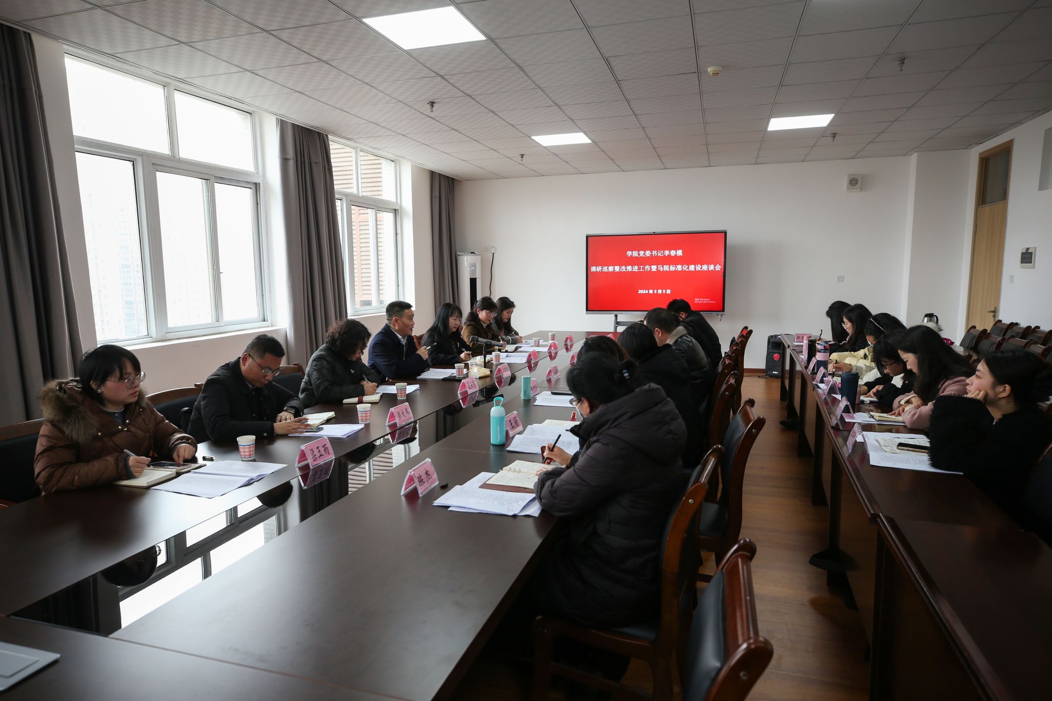 为推进《普通高等学校马克思主义学院建设标准》、省“双高”建设要求和市委第四巡察组同步联动巡察学院反馈意见整改的落地落实,3月5日上午,学院党委书记李春模带队到马克思主义学院调研,并在学院青年路校区图书楼1005会议室召开调研座谈会。