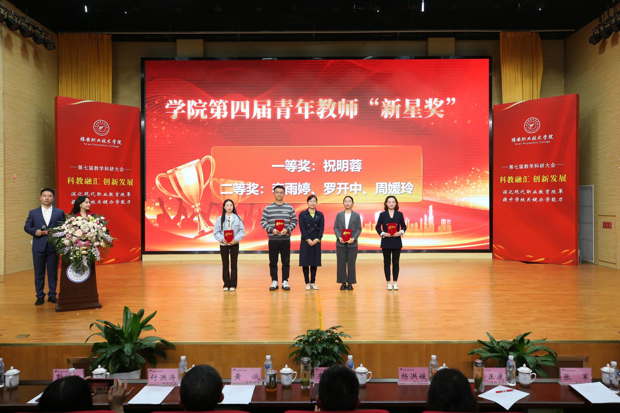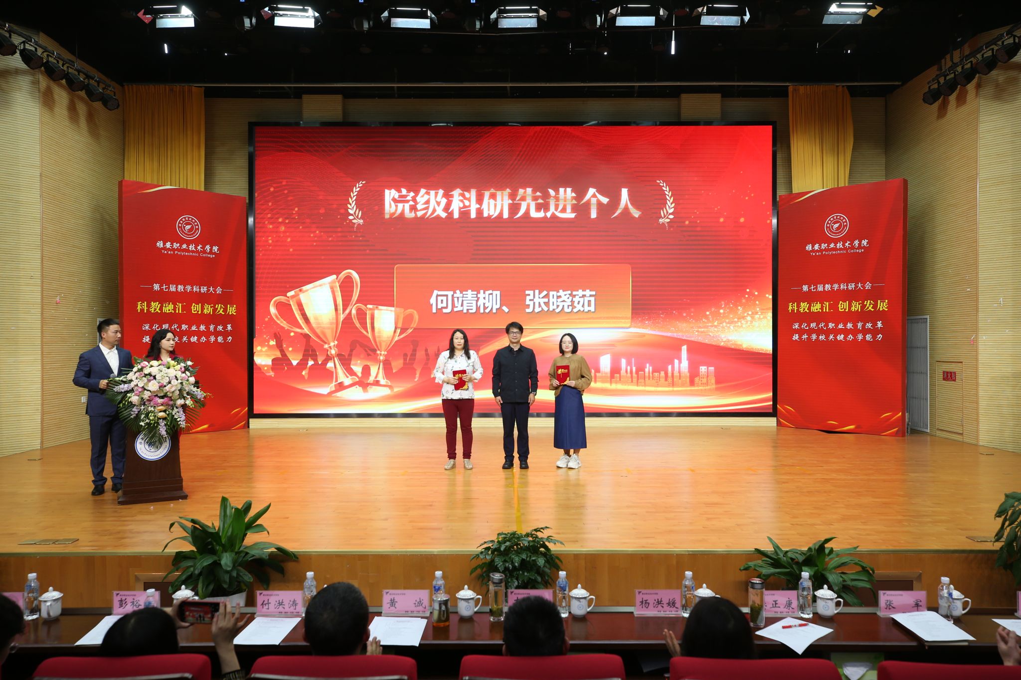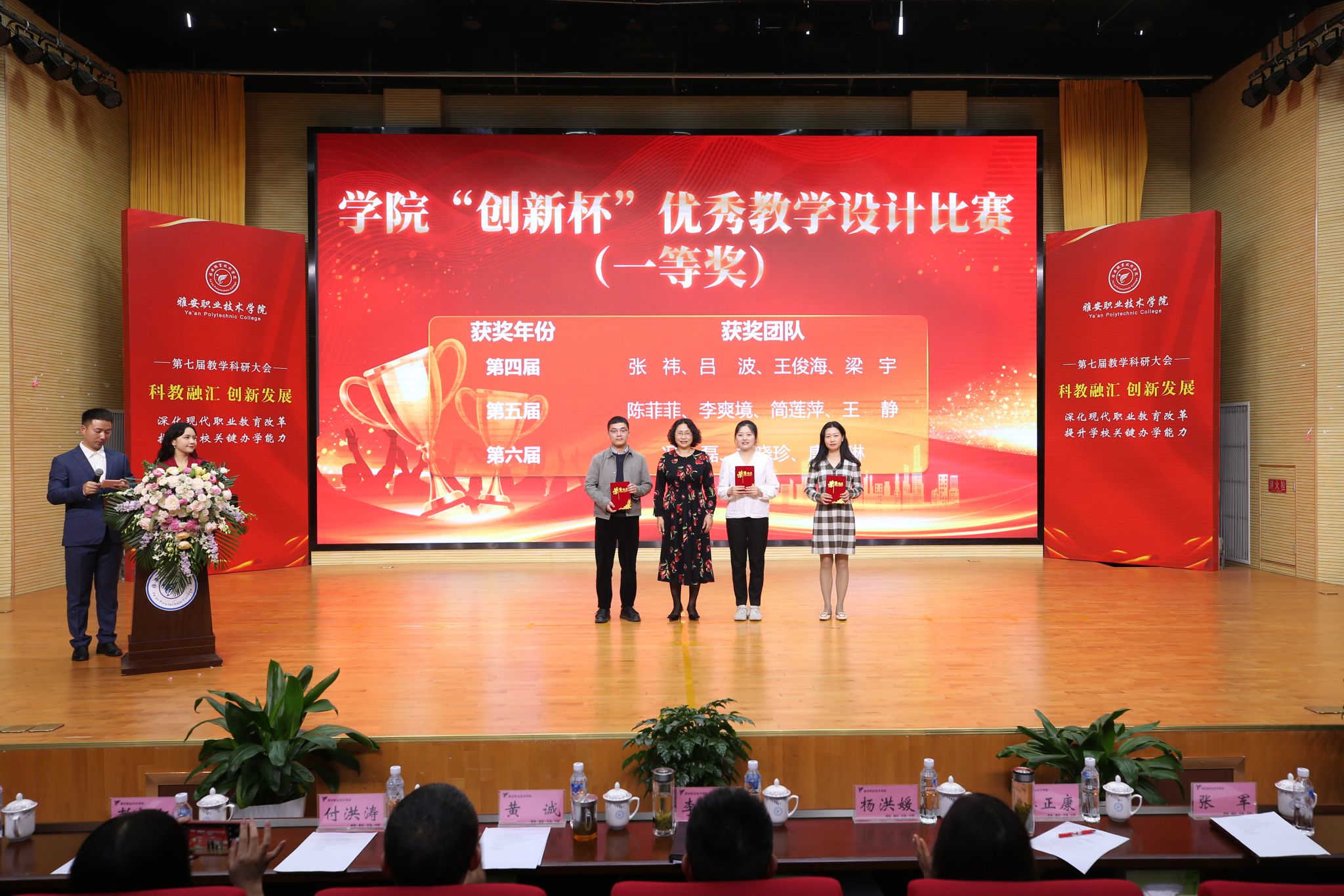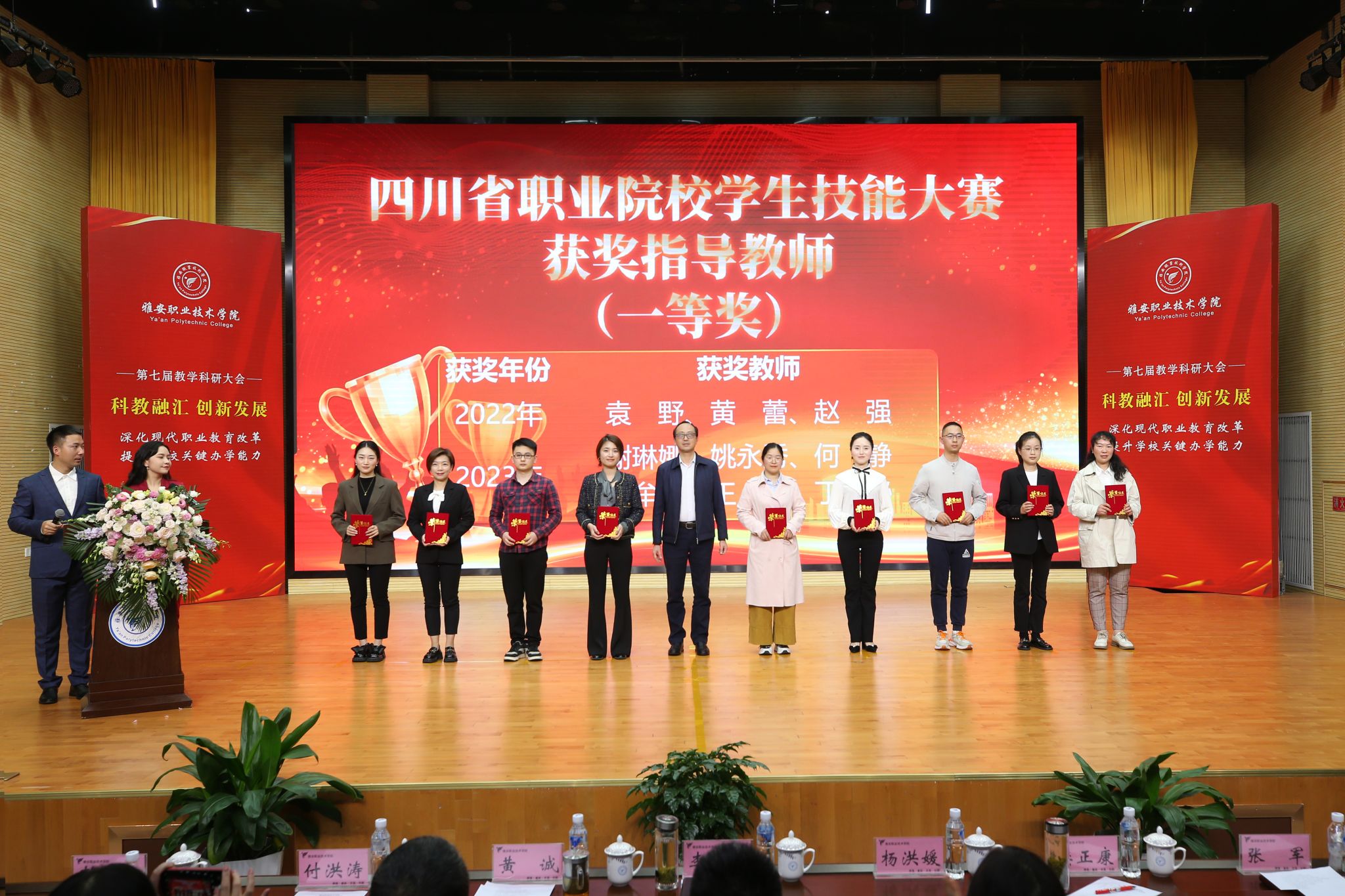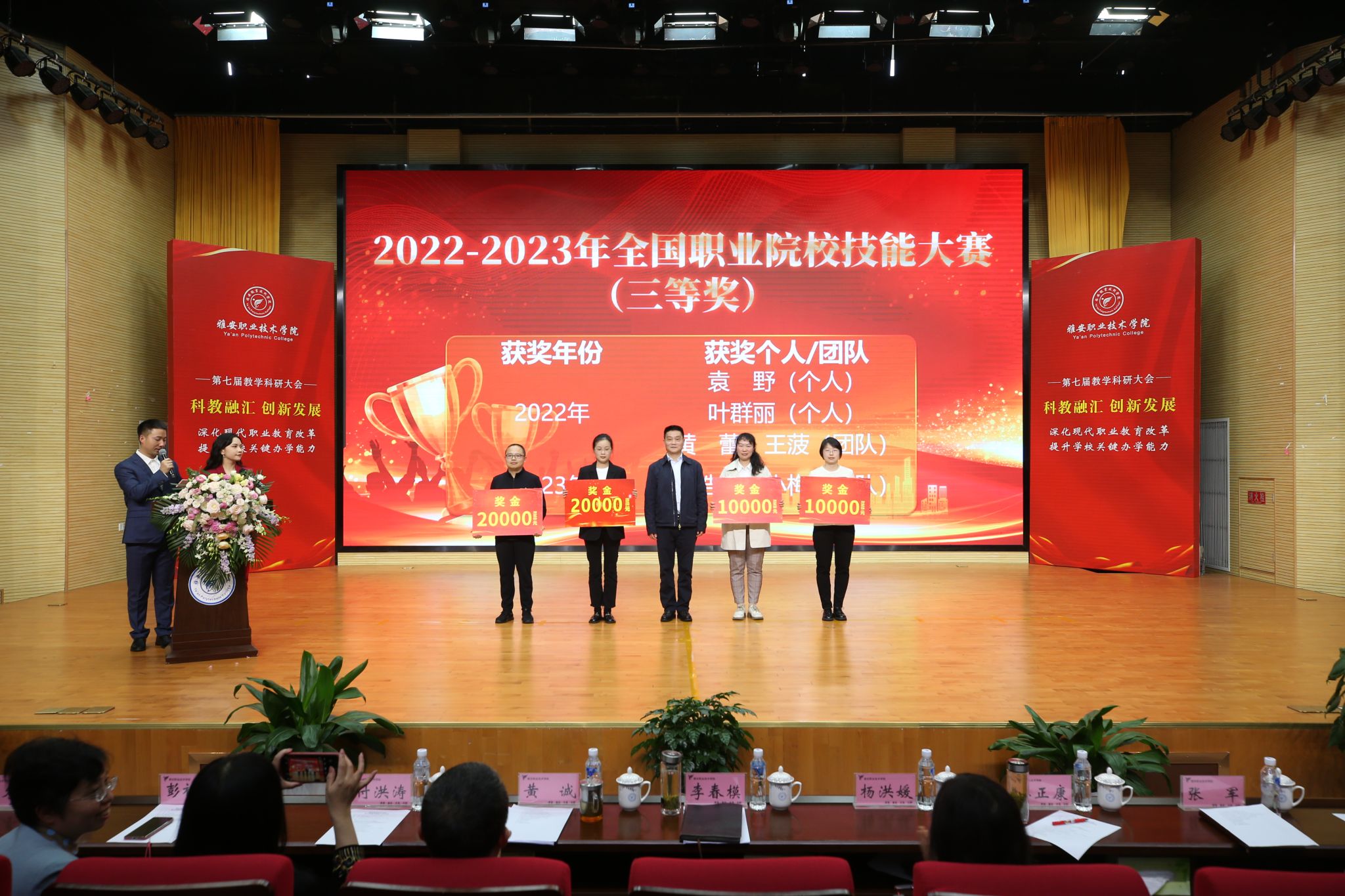 会议表彰了在教学科研工作中取得优秀成绩的集体和个人,涵盖了“三教改革”“科教融汇”“以赛促教”三个方面19个奖项。