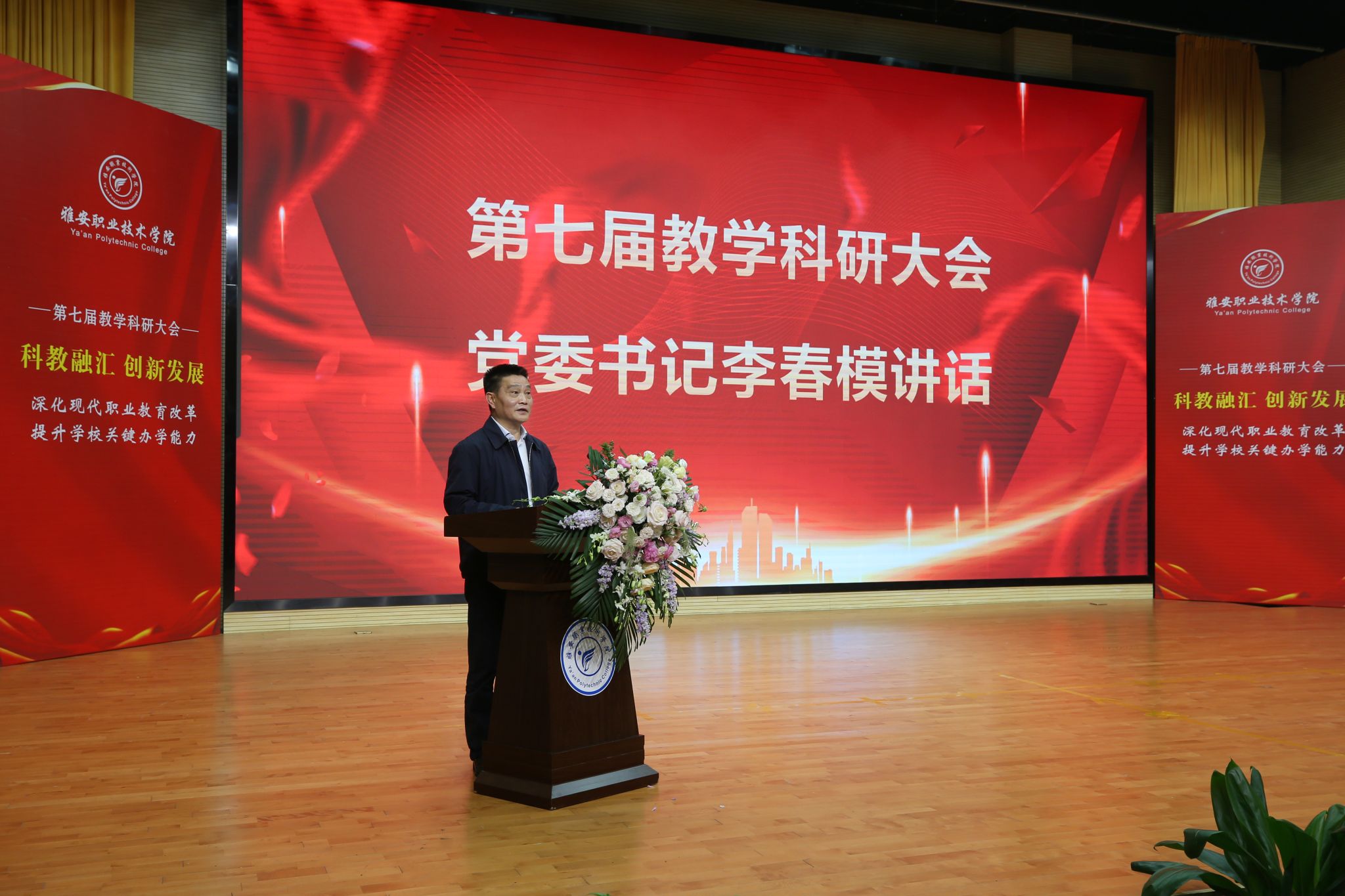 4月2日下午,学校第七届教学科研大会在经开区校区聚雅厅召开。党委书记李春模,党委副书记、校长黄诚及学校其他党政班子成员,全体中层干部及师生代表300余人参会。会议由党委常委、副校长樊正康主持。