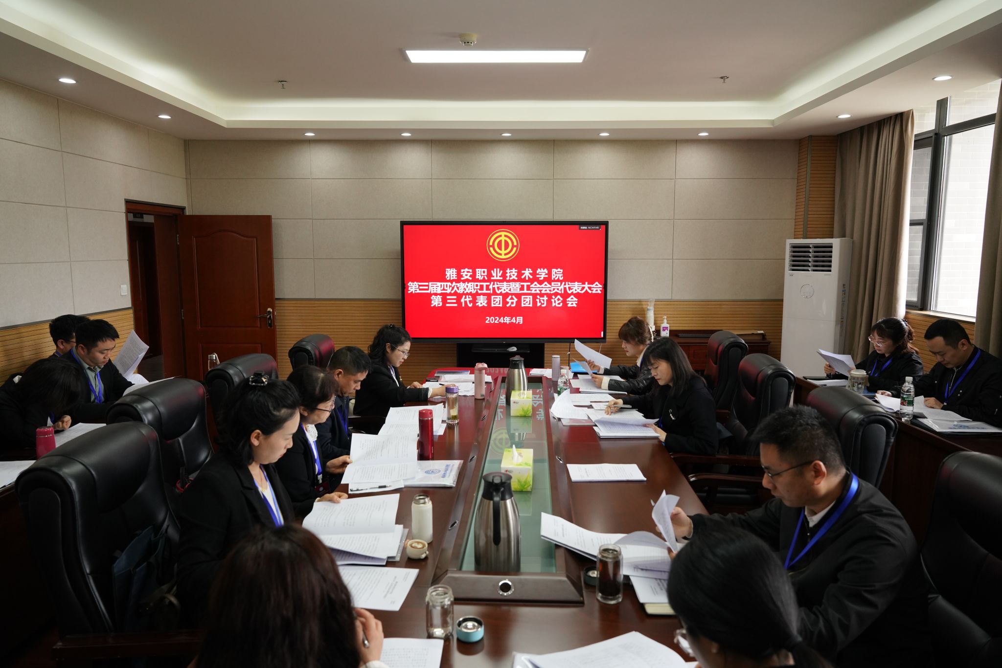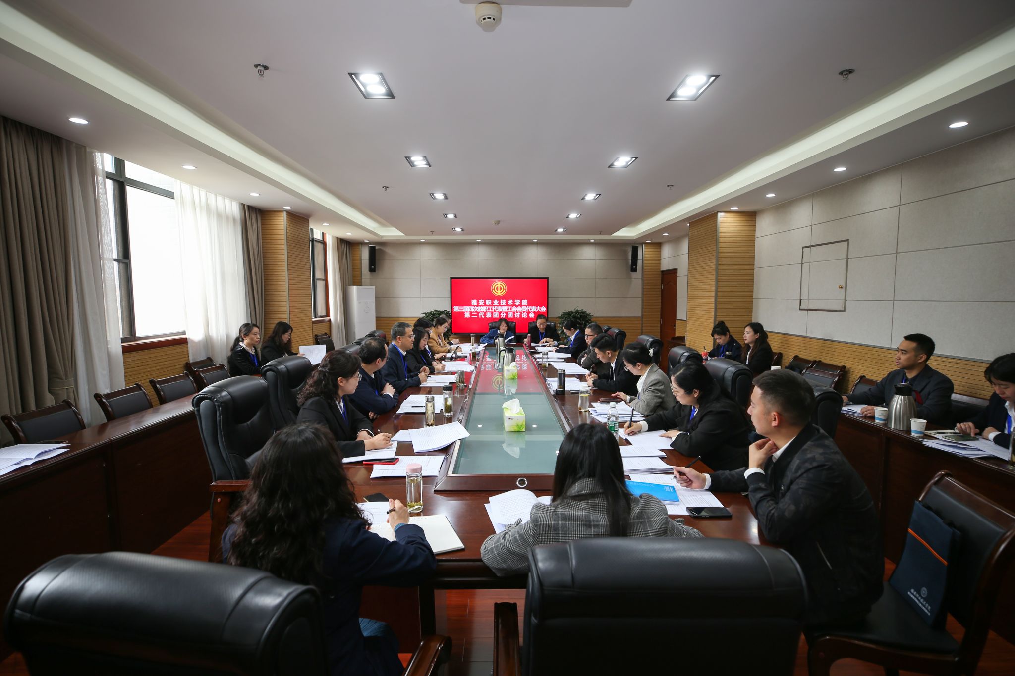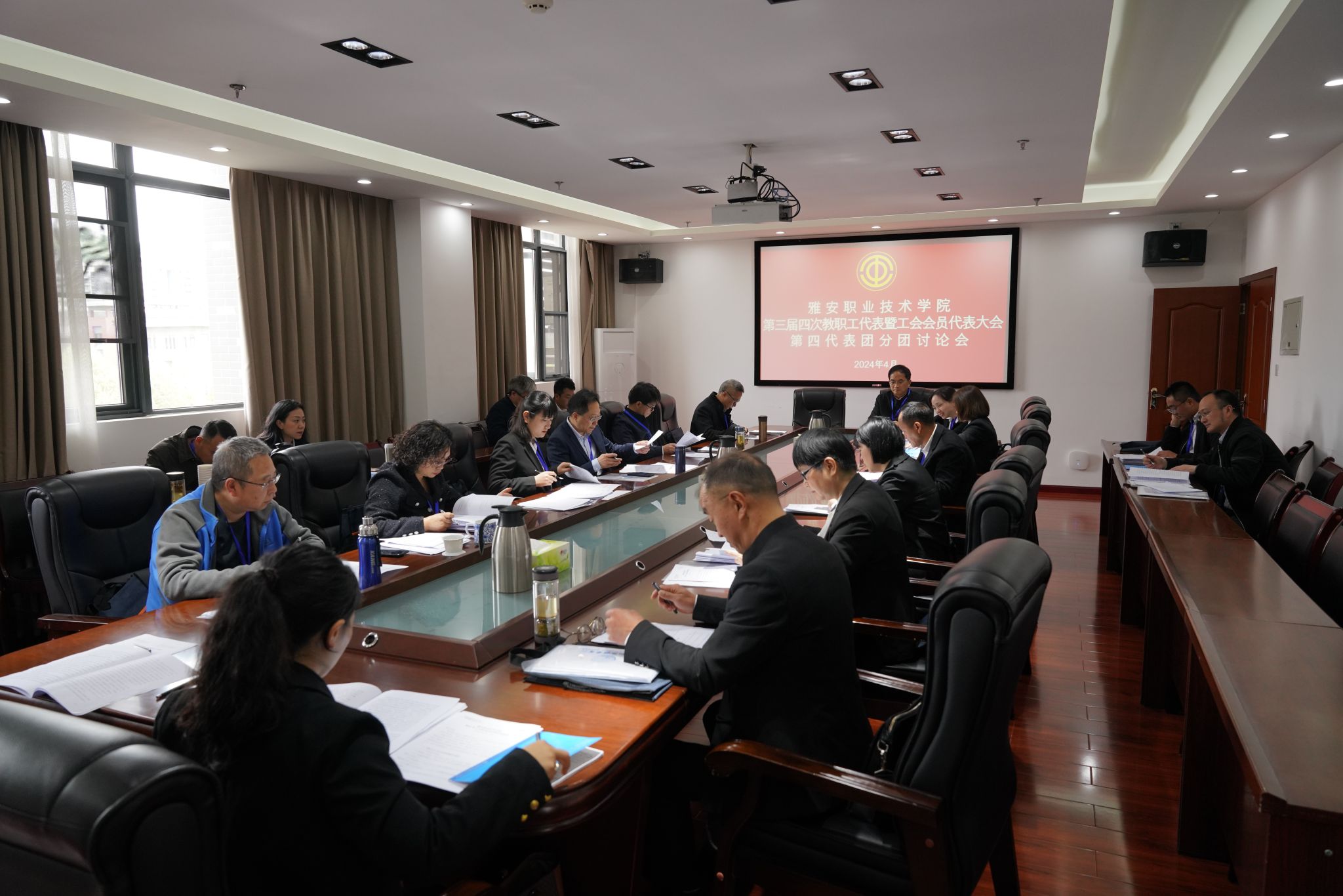 四个代表团还书面审议了学校财务工作报告、工会经费审查报告、教代会提案审查报告、为民办实事具体事项,并提出了富有建设性的意见和建议。