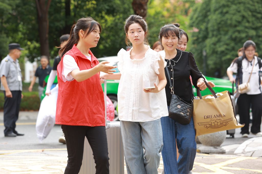 “原以为在高温天气下要排很长的队,想到可能人都要晒晕就很忐忑。没想到现场那么简单,只到辅导员那里完成录取通知书核查和身份确认就被师哥带着进了宿舍,很方便。”刚完成宿舍入住的卫生信息管理专业新生周乐笑着介绍。