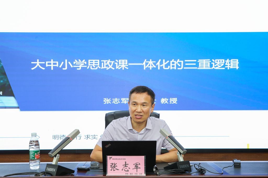 成都航空职业技术学院张志军教授作题为《大中小学思政课一体化的三重逻辑》讲座,深刻阐释了大中小学思政课一体化的内涵与意义,强调思政课一体化建设需要解决目标、课程、内容、教材、师资、教学方法以及各学段的体制机制等多方面的问题。成都农业科技职业学院刘忠珍教授作题为《推进大中小学思政课一体化建设的思考》讲座,围绕大中小学思政课一体化建设的基本内涵、价值意义和实践路径,进行了深入探讨,分享了如何将党的二十届三中全会精神融入各门思政课的路径方法。