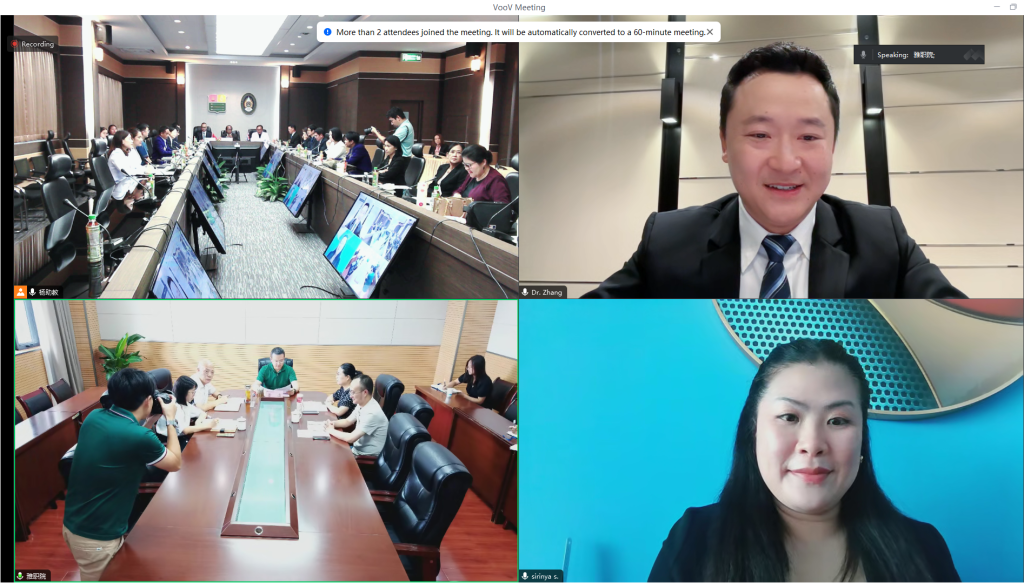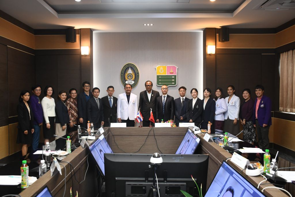 9月20日,我校与泰国兰帕潘尼皇家大学举行线上友好交流座谈会暨学校代表团抵泰欢迎仪式。兰帕潘尼皇家大学校长魏坤·通阿朗、副校长沙瓦猜·瑟帕隆塔那龚、帕博高国立医院院长提那蓬·杜纳、国际教育中心、传媒学院、管理学院负责人,我校党委副书记、校长黄诚,党委常委、副校长樊正康,及相关职能部门、二级学院负责人同步参加会议,会议由兰帕潘尼皇家大学国际教育中心中方主任张德俊主持。