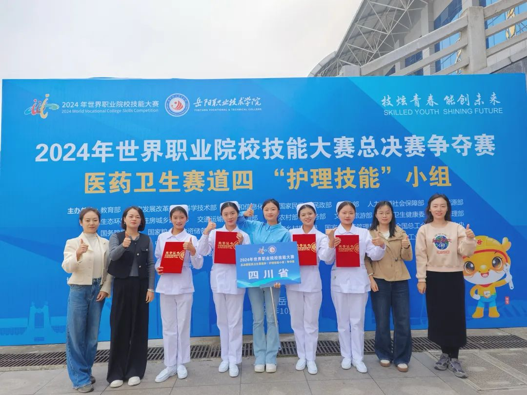 11月1日上午传来喜讯,我校在2024年世界职业院校技能大赛总决赛医药卫生赛道四(护理技能小组)争夺赛中斩获大奖!在为期四天的比赛中,来自全国各地的61支高职院校队伍的216名选手将同台竞技、大展身手,由护理学院王静、李婧负责,王菠、黄蕾、闵捷、陈俊、彭玉娇、许玉贤、张雪庆、陈菲菲等老师指导,以刘家铭、邓静、任梓慧、杨梦、戴雨虹五位同学组成的参赛团队,代表四川省参赛,经过激烈角逐,斩获国赛银奖!