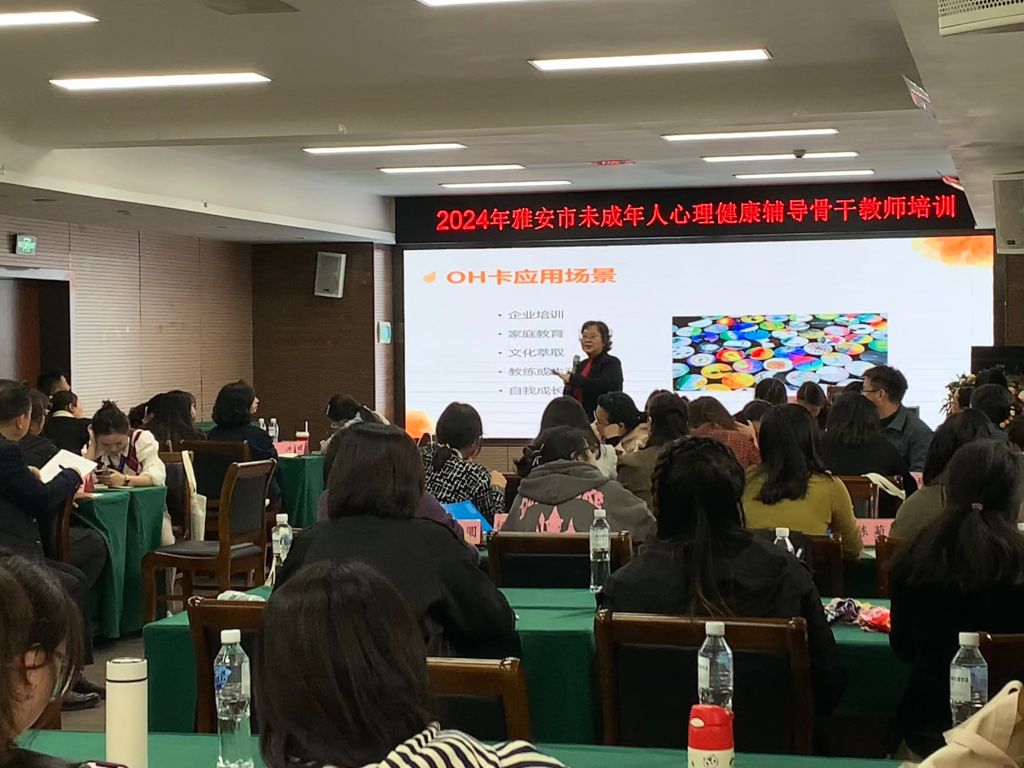 为贯彻落实《四川省全面加强和改进新时代学生心理健康工作实施方案》精神,推进心理骨干教师队伍建设,营造良好心理健康教育氛围,促进我市未成年人心理健康教育工作向纵深发展,10月29日至30日,2024年雅安市未成年人心理健康辅导骨干教师培训在学校学府花园酒店集雅厅顺利举办。各县(区)未成年人心理成长指导中心负责同志、各学校未成年人心理健康辅导工作骨干教师以及市教科院教研员共计54人参加培训。