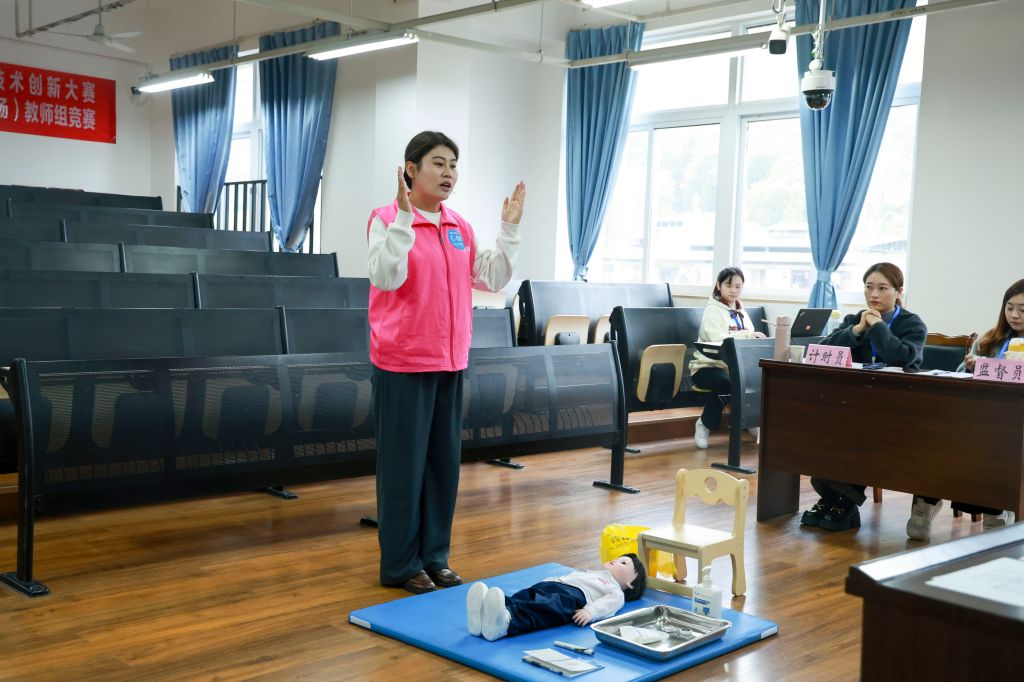 中职学生团体赛包括幼儿照护综合知识测评和幼儿回应性照护技能考核两个项目,其中幼儿回应性照护技能考核包含安全防护、日常保健、日常生活照料和早期发展指导四项任务。最终,广西经贸职业技术学校团队在比赛中脱颖而出,获得了第一名的好成绩。