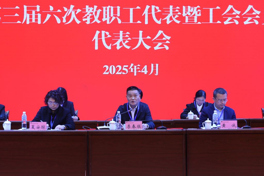 4月8日,学校第三届六次教职工代表暨工会会员代表大会在经开区校区聚雅厅召开。学校党政领导、大会正式代表、列席代表120余人参加会议。党委书记李春模出席并讲话,党委副书记、校长黄诚向大会作工作报告。党委常委、工会主席夏安琼作教代会、工代会报告并主持大会。