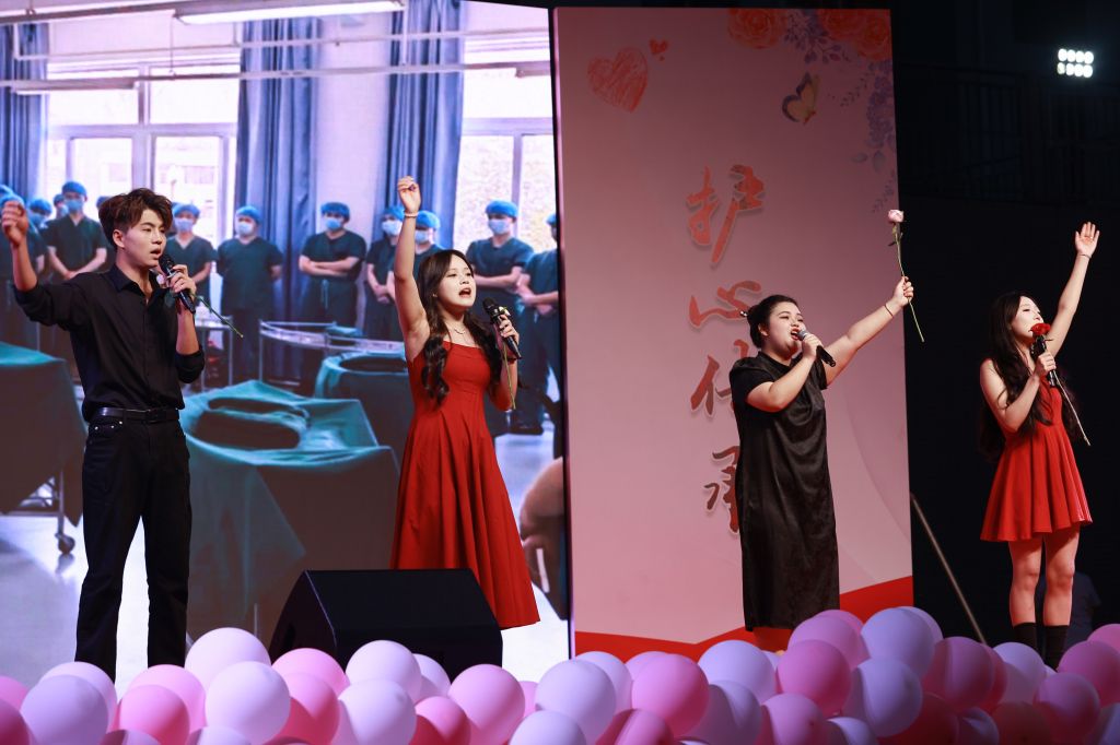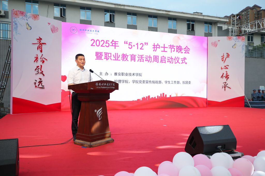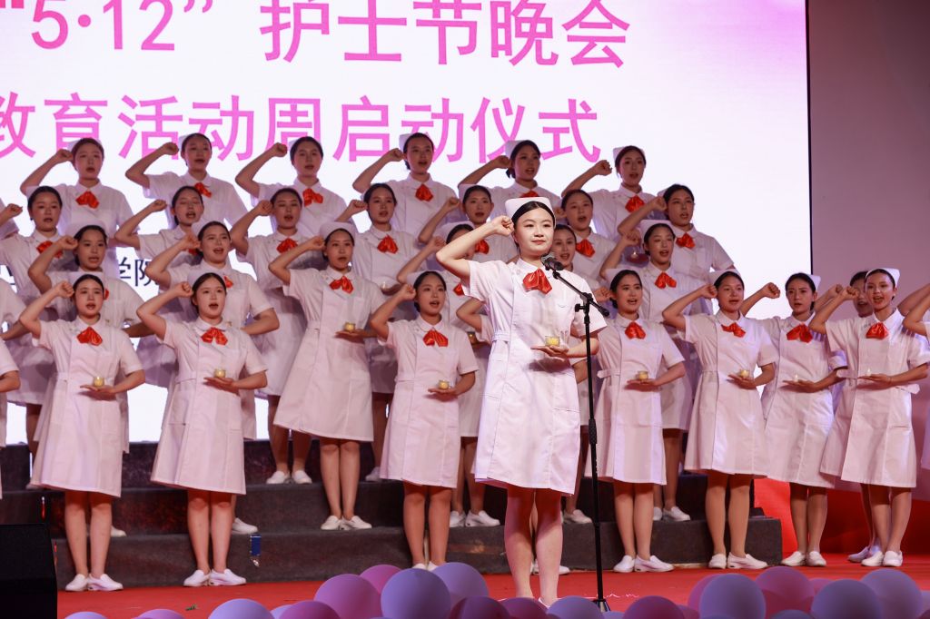 5月12日,学校2025年“5.12”护士节晚会暨职业教育活动周启动仪式在青年路校区体育场举行,学校党委书记李春模,党委副书记、校长黄诚,党政班子成员、相关职能部门负责人及护理学院师生2500余人参加活动。活动通过视频方式在线上同步直播。