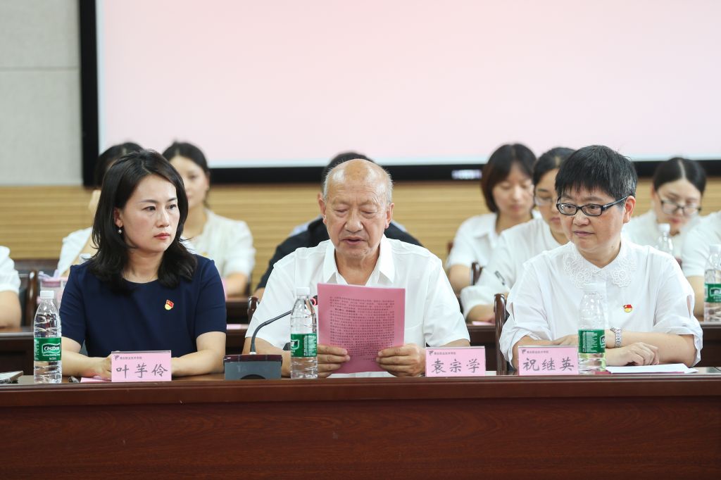 师范学院教师党员李燕、中医与康复养生学院直属党支部书记祝继英、护理学院党总支书记叶芋伶分别作为“两优一先”受表彰代表发言。天全县仁义镇小落村驻村工作队第一书记郑献辉,离退休党总支第二党支部书记袁宗学分别作为驻村干部和离退休老党员代表发言。