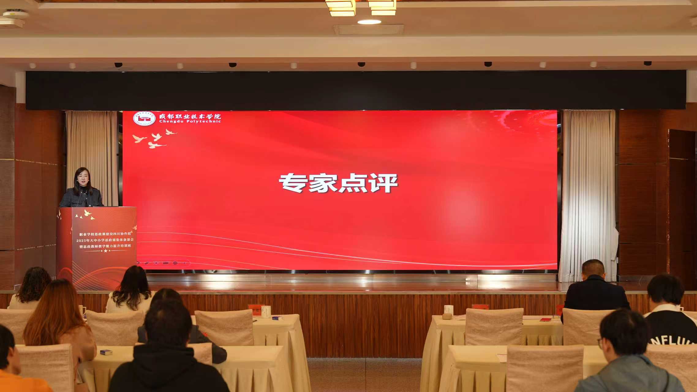 我校党委副书记杨洪媛,成都职业技术学院党委委员、副院长邹潇分别代表承办学校致辞。杨洪媛指出,思政课是立德树人关键课程,要系统设计、循序渐进、整体推进,构建起纵向贯通、横向协同的育人新格局,推进大中小学思政课一体化建设。她强调,学校作为四川省职业学校思政课建设协作组成员单位,推动思政课建设,要以“协同联动”为路径,在构建大中小学思政课“线上+线下”融合的共育机制上持续发力;要以“地方特色”为载体,在打造线上线下融合的一体化特色课堂与资源库上持续发力;要以“共建共享”为目标,在推动基于云平台的思政教学资源共建、成果共享和智慧教研上持续发力,从而进一步拓展“大思政课”工作格局,推动思政课一体化建设,助力教育强国建设与时代新人培养。