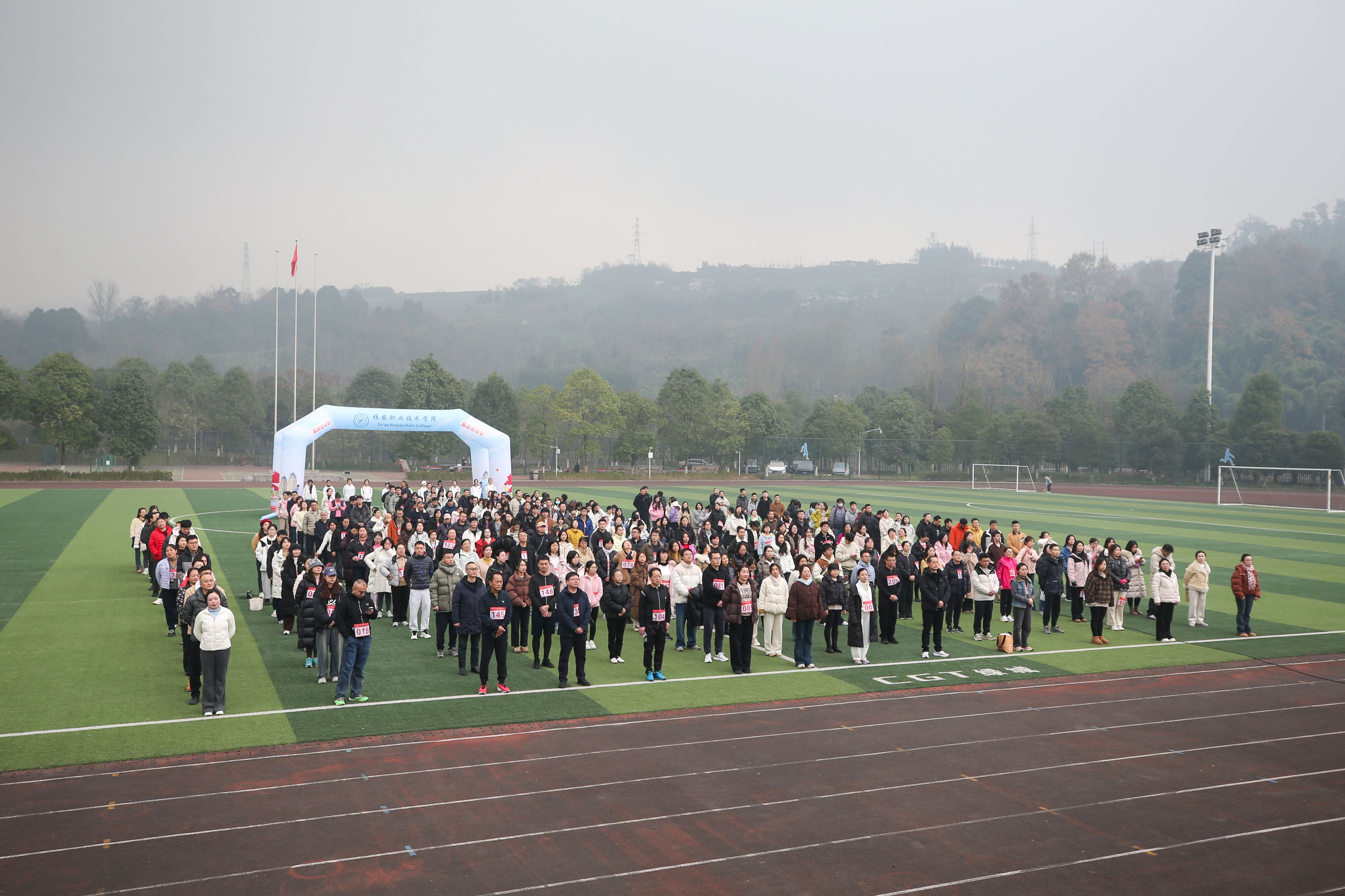 运动员们在欢快的音乐声中充分热身后,随着樊正康、陈冬冬两位校领导的发令枪响,210余名运动员精神抖擞地踏上环校跑道,在优美的校园中快乐奔跑,以健康昂扬的姿态喜迎新年到来。