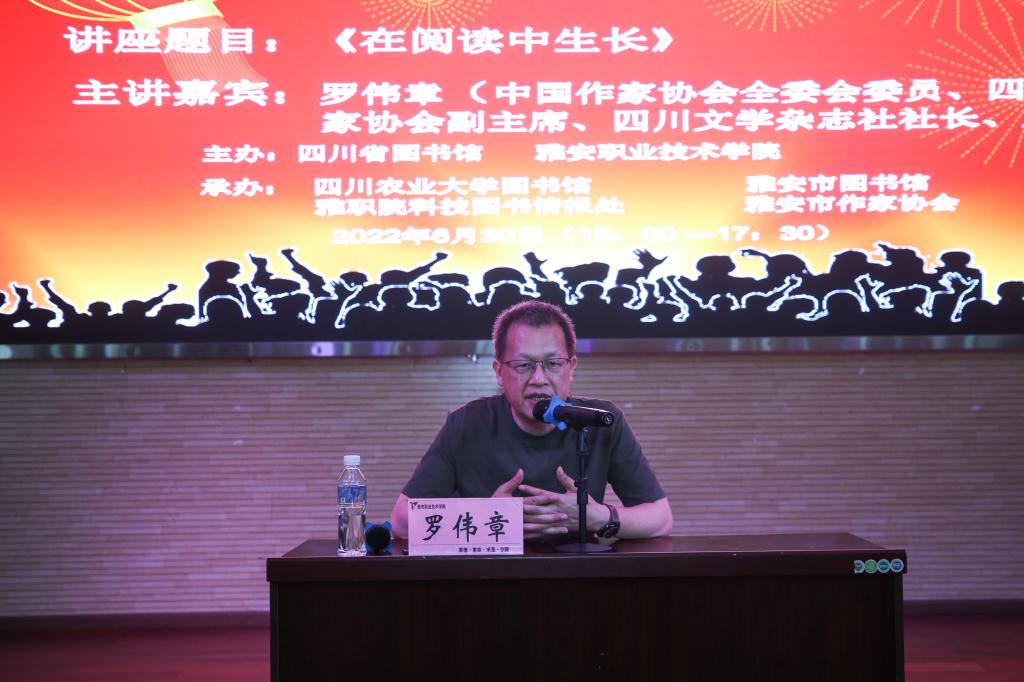 6月30日下午,由四川省图书馆、学院主办的“成渝经济文化大讲堂”第四期在Beat365唯一官方网站青年路校区汇雅厅举行。讲座由中国作家协会全委会委员、四川省作家协会副主席、《四川文学》杂志社社长、《四川文学》主编罗伟章先生主讲,学院党委委员、宣传统战部部长郭英才主持了此次讲座。雅安市图书馆、雅安市作家协会、雨城区作家协会等单位代表以及学院三百余名师生参加了讲座。