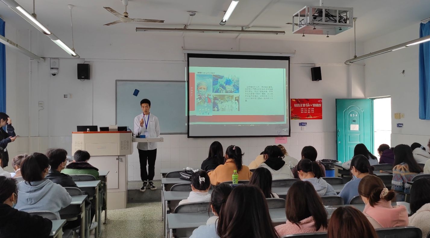 在“弘扬伟大抗疫精神,做新时代中国青年”主题宣讲中,2017级五年制护理学生解雪连回忆起自己勇救溺粪儿童和在家乡参与疫情防控的经历时,眼眶微红。台下坐着的是我院第九期“青马工程”的学员们。