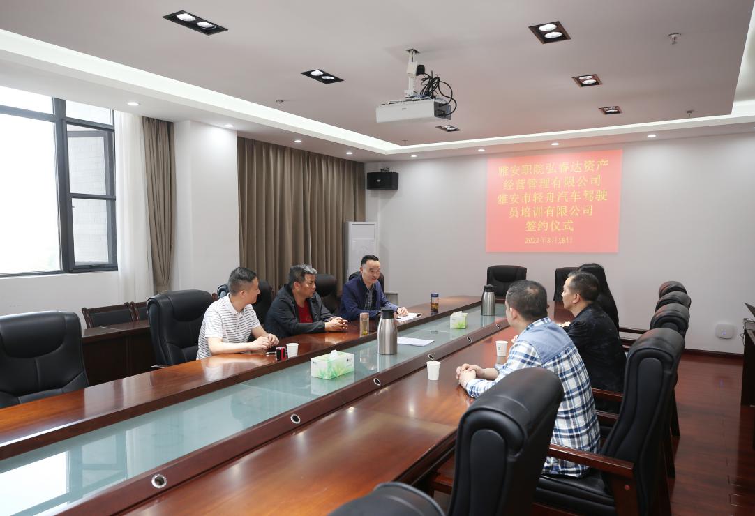 3月18日上午,学院弘睿达资产经营管理有限公司与雅安市轻舟汽车驾驶员培训有限公司,在经开校区综合楼518会议室举行联办驾校合作签约仪式。