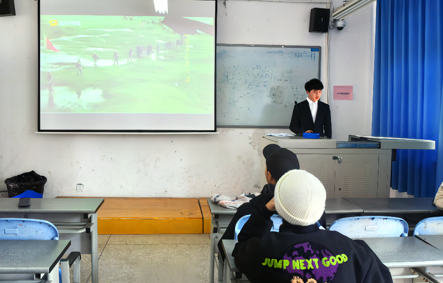 12月21日,由院团委宣传中心主办的“赏析红色诗词,追寻红色记忆”学生讲师团第六季第四期在青年路校区图附204教室顺利举行,本次讲座由学生讲师团成员姚如菲、李宇涵两位同学主讲,学生代表120余人参与讲座。