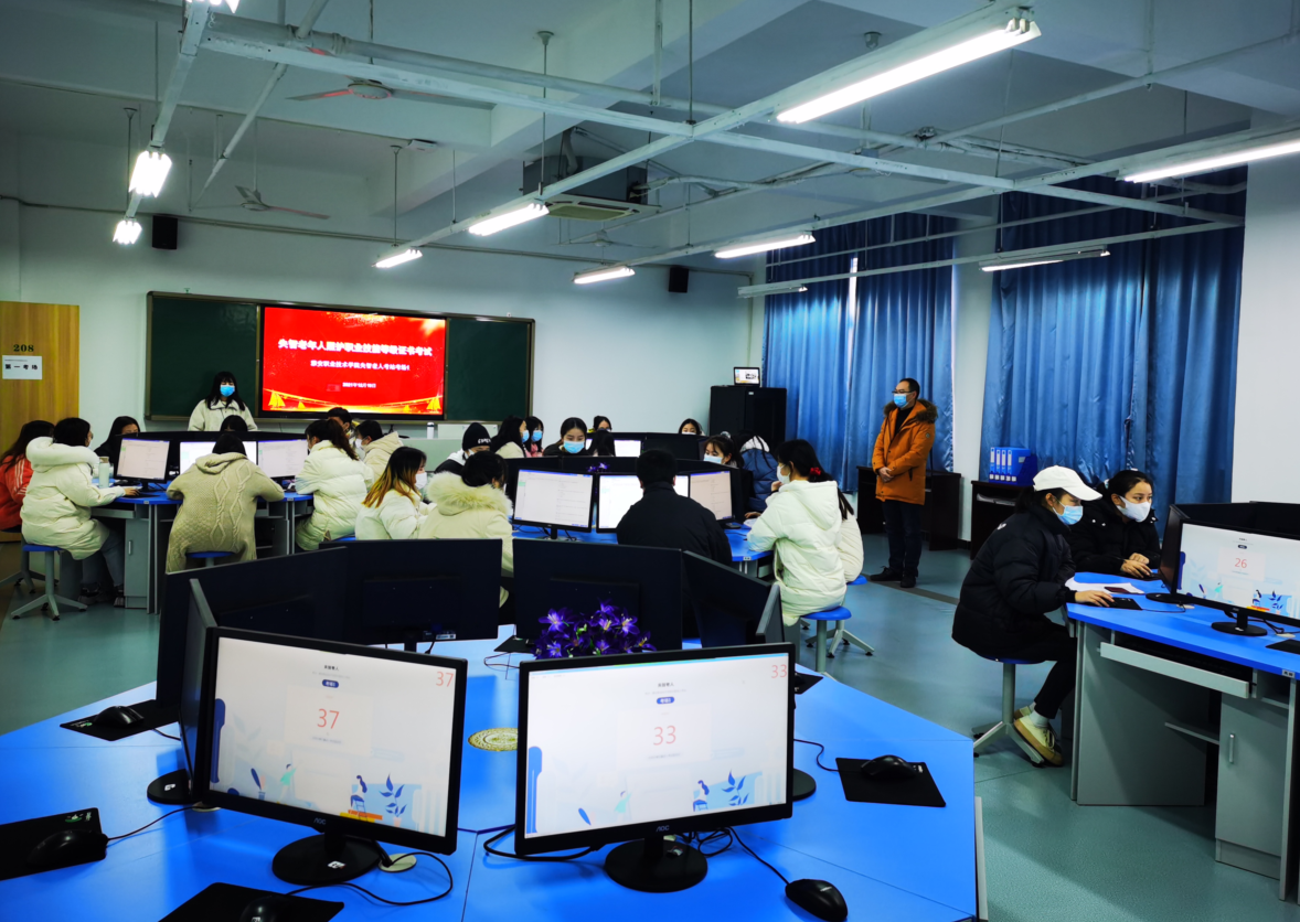 在学校领导和考评组织北京中民福祉教育科技有限责任公司的统筹下,学校各个部门紧密协作,从考前动员、考务人员配备与培训、设备调试等方面进行精心筹备,严格按照“1+X”证书制度考核管理规定部署考务组织工作。在考核组成员团结配合下,监考教师严格遵守工作流程,严守考试纪律,考场技术保障有力,系统稳定,秩序井然。考评组顺利完成本次考核相关工作。