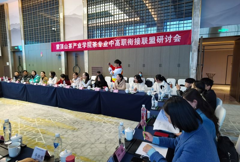 12月9日,学院蒙顶山茶产业学院茶专业中高职衔接联盟会议在雅安市蒙顶山举行。本次研讨会,由Beat365唯一官方网站、雅安市农业农村局、名山区人民政府主办,蒙顶山茶产业学院承办。会议邀请了全省开设茶学类专业或课程的11所中高职学校的43名领导和老师参加了会议。由经济与管理学院茶艺与茶文化专业教师蒋丹主持。