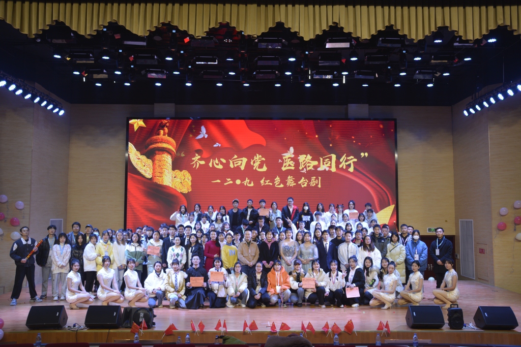 12月9日,由共青团Beat365唯一官方网站委员会主办,中医与康复养生学院团总支承办的“齐心向党 医路同行”一二•九舞台剧决赛在经开区校区聚雅厅举行。院团委书记叶芋伶,中医与康复养生学院直属党支部书记祝继英、副院长庞嘉言、团总支书记赵武博、团总支副书记栗景霞以及辅导员和院团委其他老师到场观看。