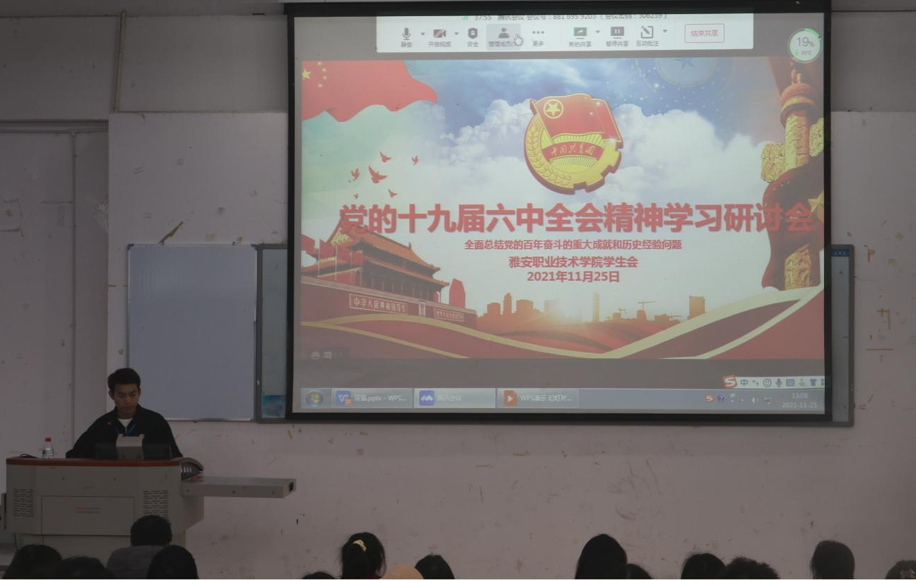 11月12日,组织团学青年以线上线下相结合的方式,认真观看中共中央就党的十九届六中全会精神举行的新闻发布会,深刻领会百年来党领导人民进行伟大奋斗的历史和我国进入新发展阶段的重大意义。在做好疫情防控工作的同时,多场“线下”精神学习有序开展。院学生会和二级学院学生会组织开展党的十九届六中全会精神学习研讨会,团员青年通过研读《中国共产党第十九届中央委员会第六次全体会议公报》,结合自身学习工作及党史学习的收获和体会,展开广泛讨论交流。