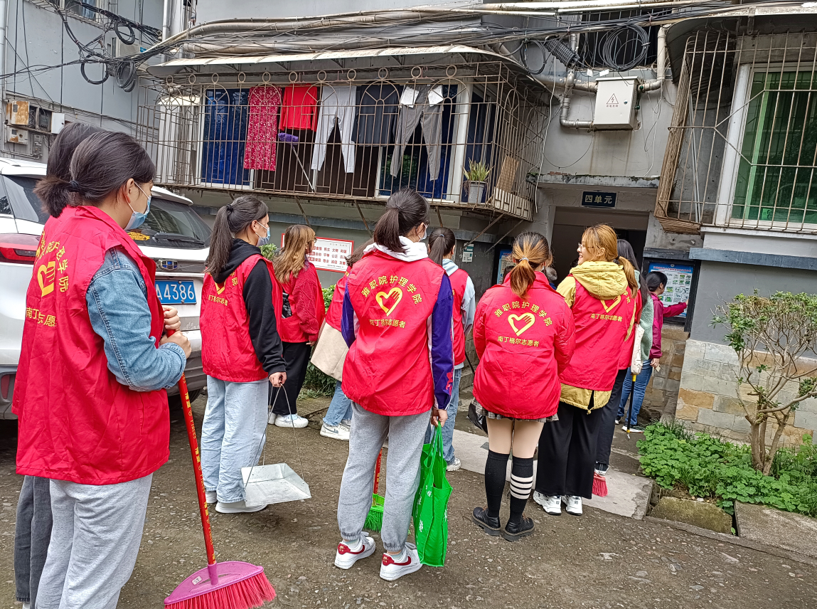 10月26日,护理学院南丁格尔志愿服务队在爱国苑小区开展“服务社区,爱暖人心”为主题的志愿活动,13名志愿者参加。