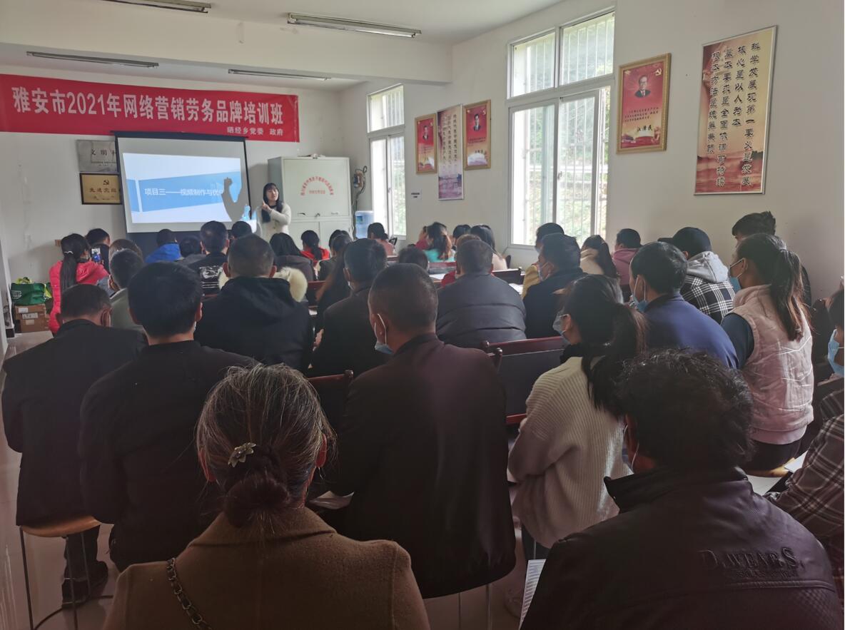 由学院承接的雅安市2021年电子商务劳务品牌——网络营销(专项能力)培训班,于10月18日在汉源县晒经乡举行开班典礼,晒经乡党委书记王威毅,智信学院副院长吕波,任课教师等出席开班典礼。脱贫户、返乡农民工和青年创业者共计53人参加培训。