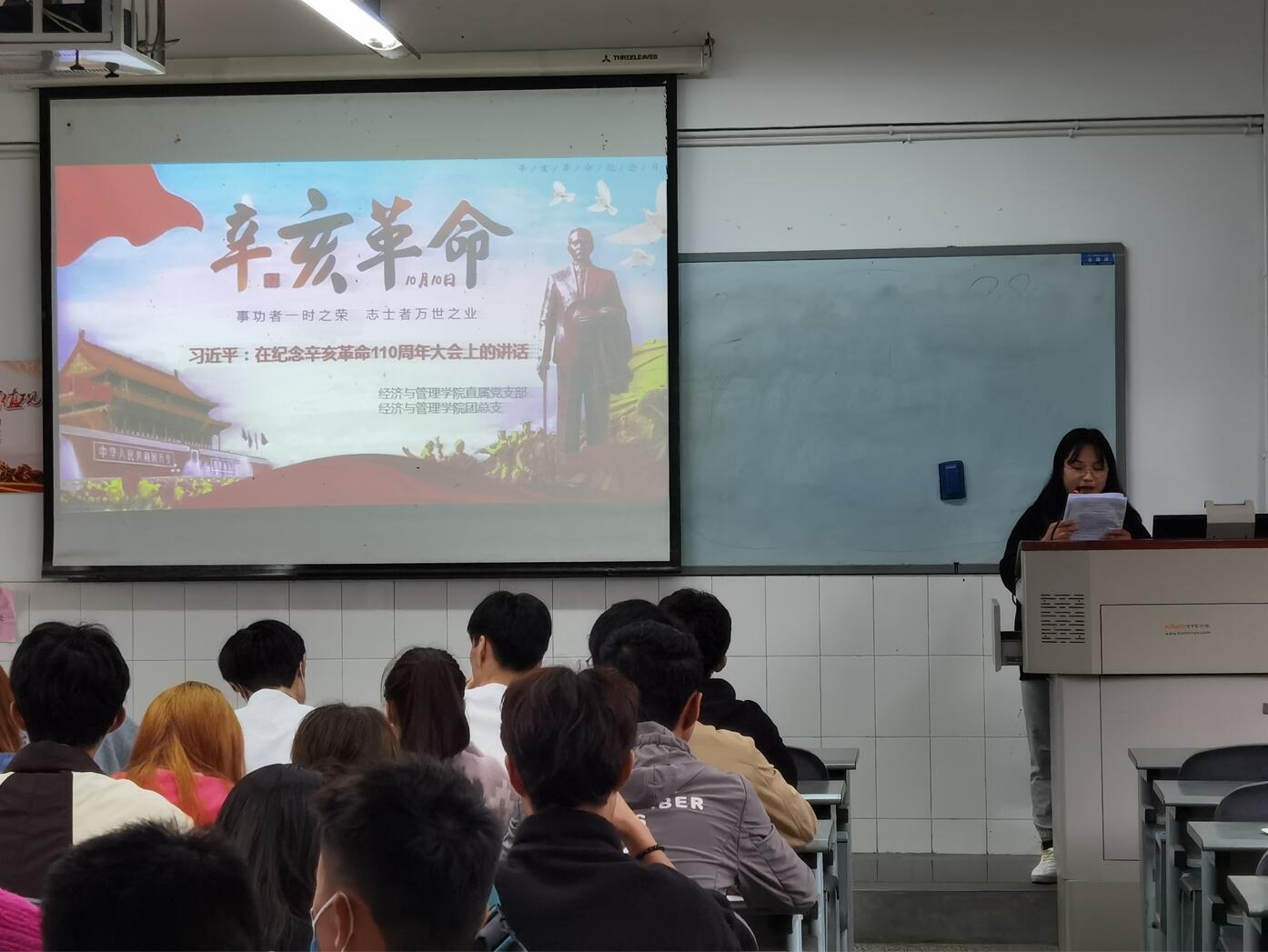 10月13日,经济与管理学院直属党支部书记高运荣主持召开辅导员与学生干部会议,集中学习贯彻习近平总书记在纪念辛亥革命110周年大会上的重要讲话。经管学院团总支书记李思捷、党员教师、全体辅导员、学生会干部、班长、团支书共120余人参加会议。