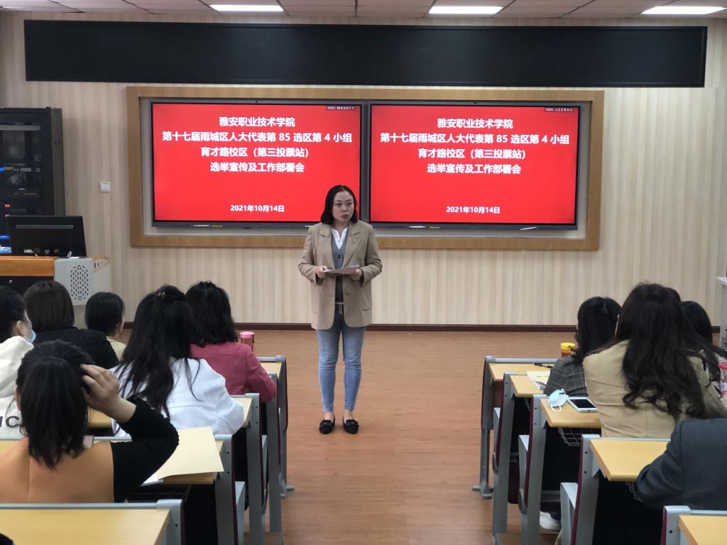 10月14日下午,临床医学院(附属医院)党总支在育才路校区实训楼202教室召开雨城区第十七届区人大代表选举工作部署会,班子成员、全体中层干部和各党支部负责人参加会议。会议由党总支副书记吴洁主持。
