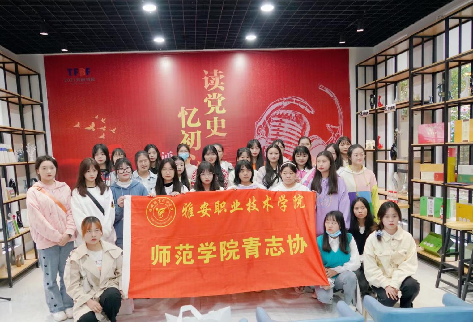 10月15日,师范学院团总支组织30名学生志愿者在新华文轩参加了由雅安市委宣传部主办的“读党史,忆初心”主题朗诵活动。