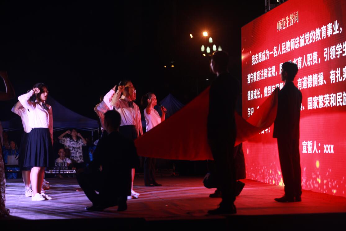 活动中,举行了师范生宣誓仪式,陆小路带领现场全体师生在国旗下进行了庄严宣誓,老师们重温了教师誓词,学生们通过宣誓也更加坚定了成为人民教师的信念。