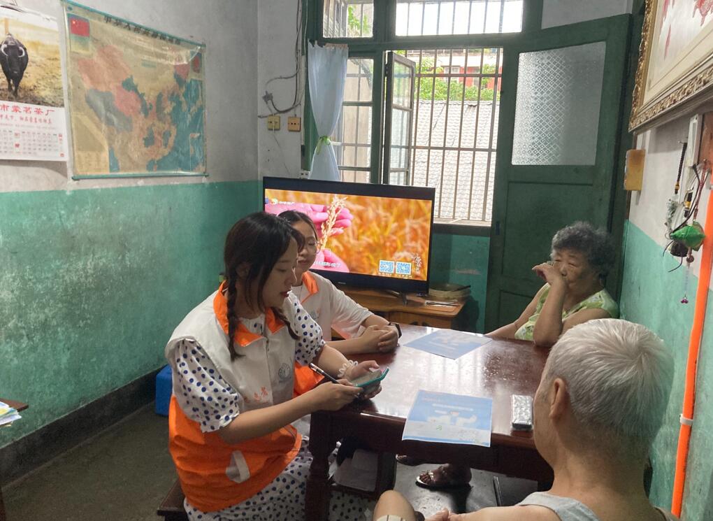 之后志愿者一行来到飞机坝社区下属大院开展智慧医疗入户志愿服务。针对独居老人进行调研,免费测量血压,科普日常慢病防护知识,对慢病患者做出健康指导。活动共计走访了36户家庭,志愿者们顶着暴雨穿梭在小区的身影分外耀眼。