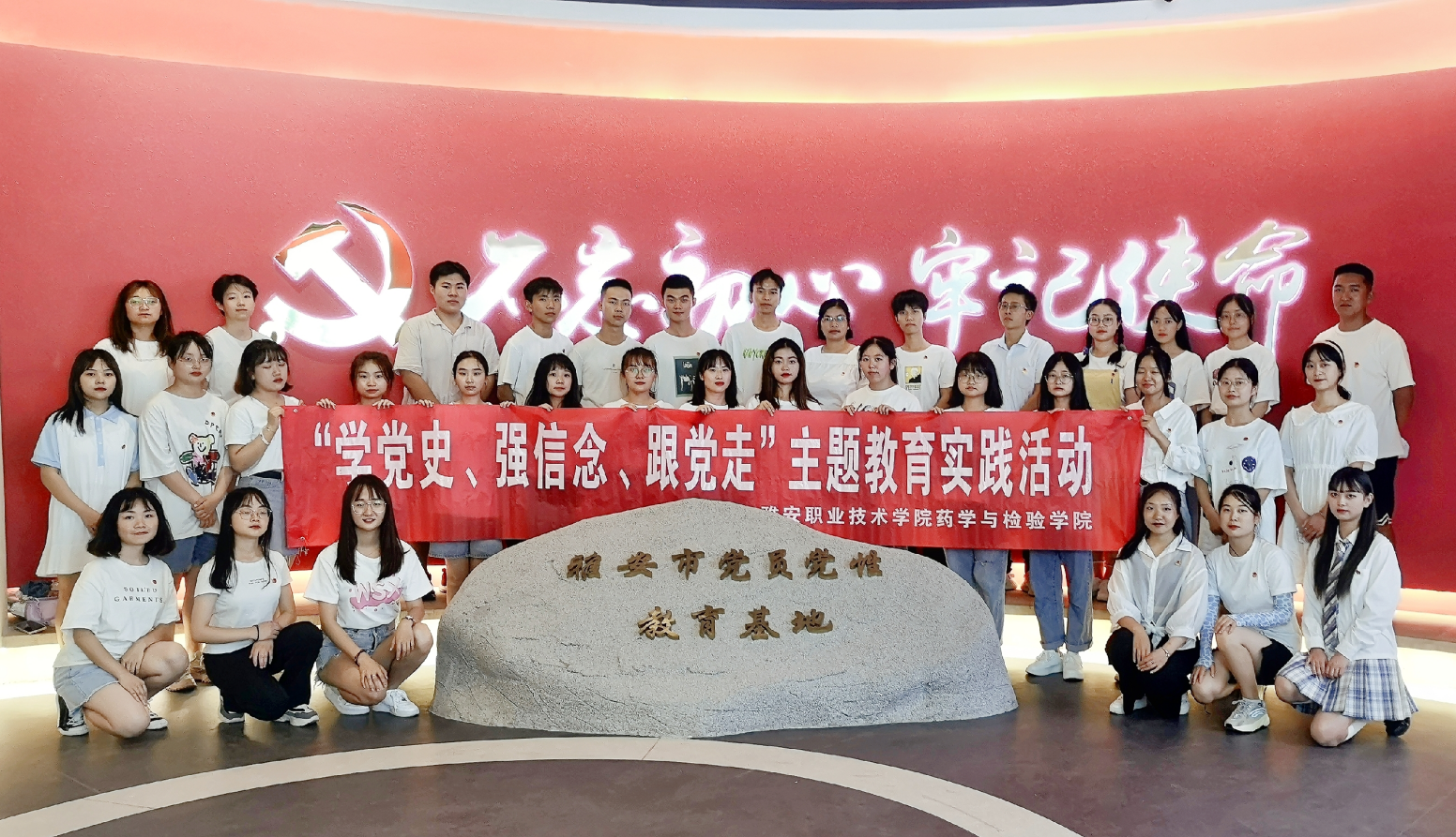为了更深入、更有效的推进党史学习教育,让同学们切身感受党的百年艰辛历程、巨大变化和辉煌成就,更好的让同学们传承红色基因,增强青年们的爱国情怀和责任意识,6月29日14:00,药检学院团总支书记鲜敏老师带领35名团员青年到雅安市党员党性教育基地,开展了以“学党史,强信念,跟党走”为主题的教育实践活动。