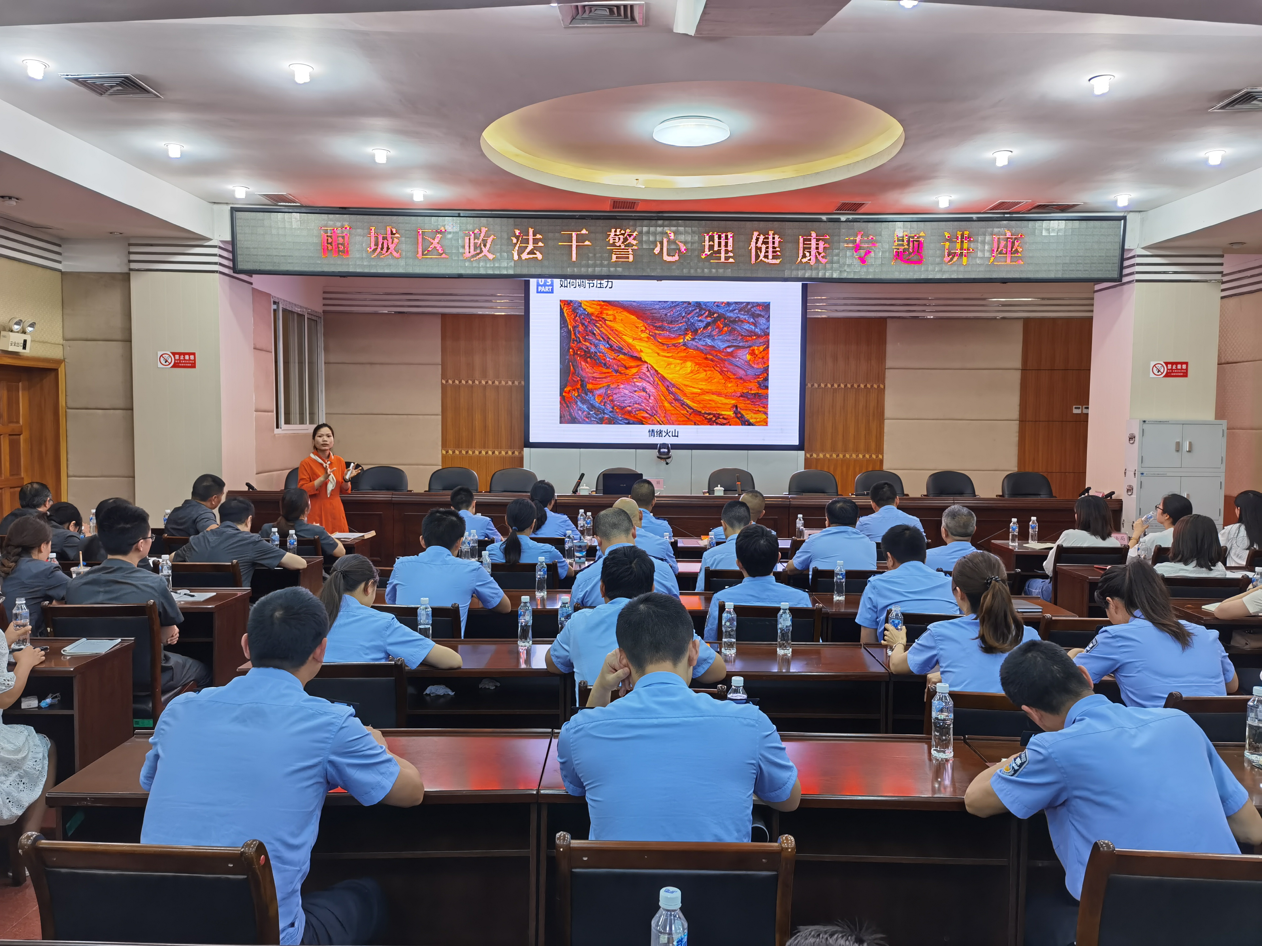 为帮助广大干警缓解压力,保持对工作生活积极健康、乐观向上的心理,以更饱满的热情投入新的工作。6月10日下午,思政部心理健康教师在雨城区政府第三会议室为区政法系统干警进行了一场心理健康辅导专题讲座,来自全区公安、检察院、法院、司法局等单位的共70余名政法系统干部认真聆听了讲座。
