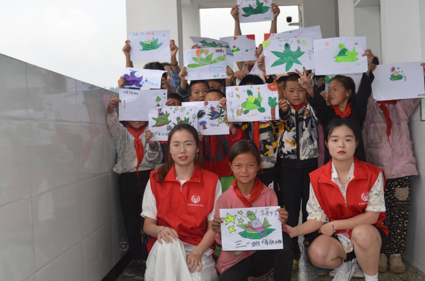 老师们带领志愿者服务队与来自荥经县民建乡中心小学共260名彝族学生一起开展了丰富多彩的活动。大家在活动中运用绘画、手工、唱歌等方式和彝族孩子们进行互动,不仅让孩子们感受幸福的童年,还让孩子们知道如何适当宣泄情绪,教会孩子们怎样增强自信,怎样通过心理暗示激发潜力。
