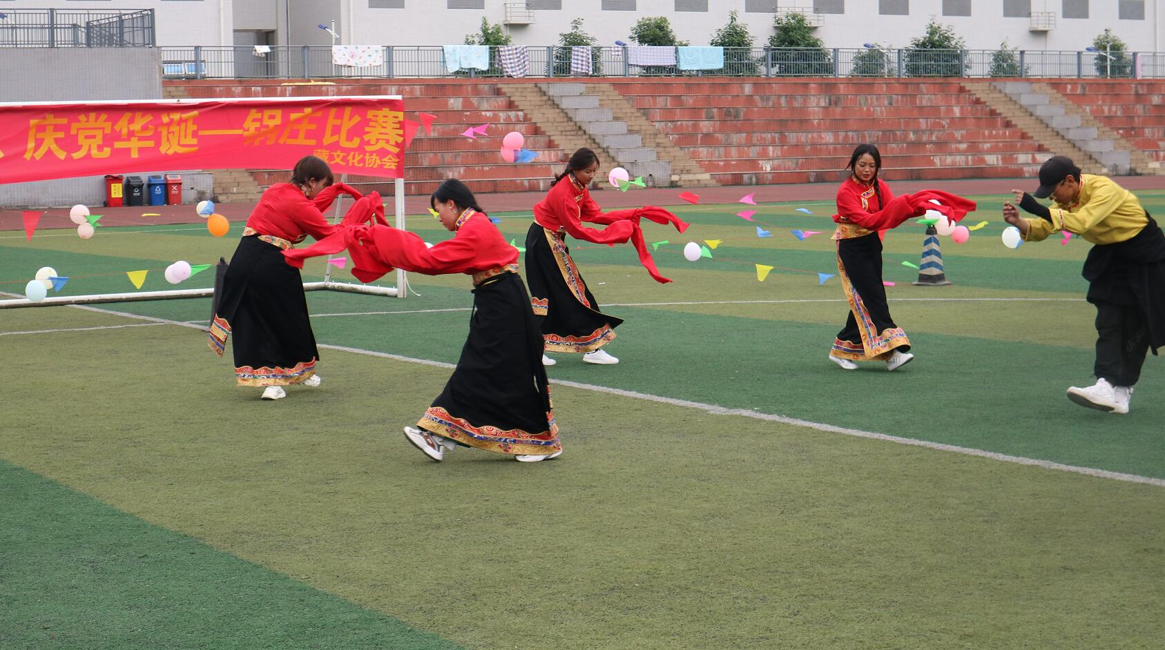 为庆祝中国共产党成立100周年,进一步丰富校园文化生活,传承中华民族优秀文化,6月5日晚,藏文化协会在青年路校区足球场举办了“感党恩,庆党华诞”锅庄舞比赛,院团委副书记郭庆出席本次大赛,200余名同学参加了本次活动。