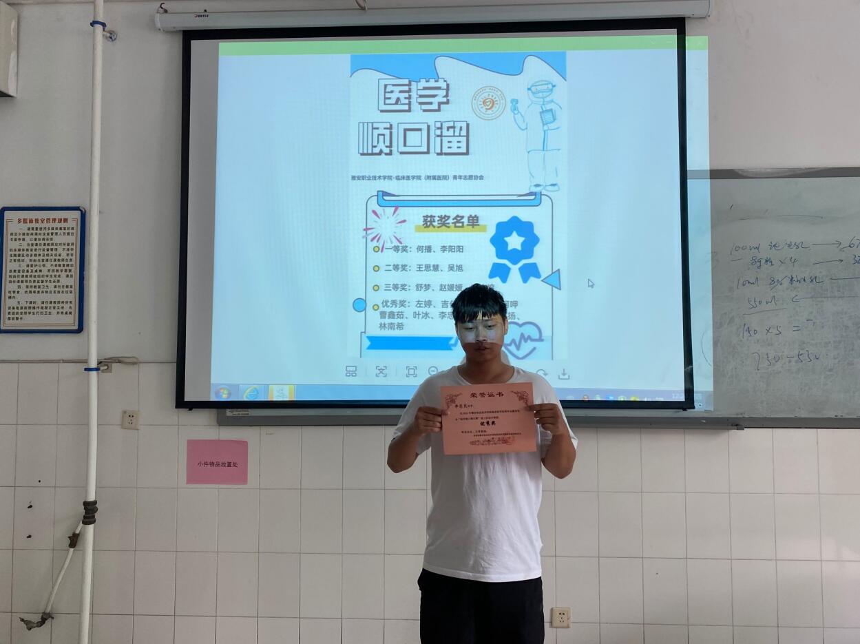 活动中,同学们将医学小知识融合归纳,将艰涩、枯燥的医学疾病预防知识转化为生动活泼、通俗易懂的医学顺口溜。由临床医学院党总支副书记李敏、副院长吴洁、四位医学专业老师组成的评审团评选出16名选手分别获得一、二、三等奖。