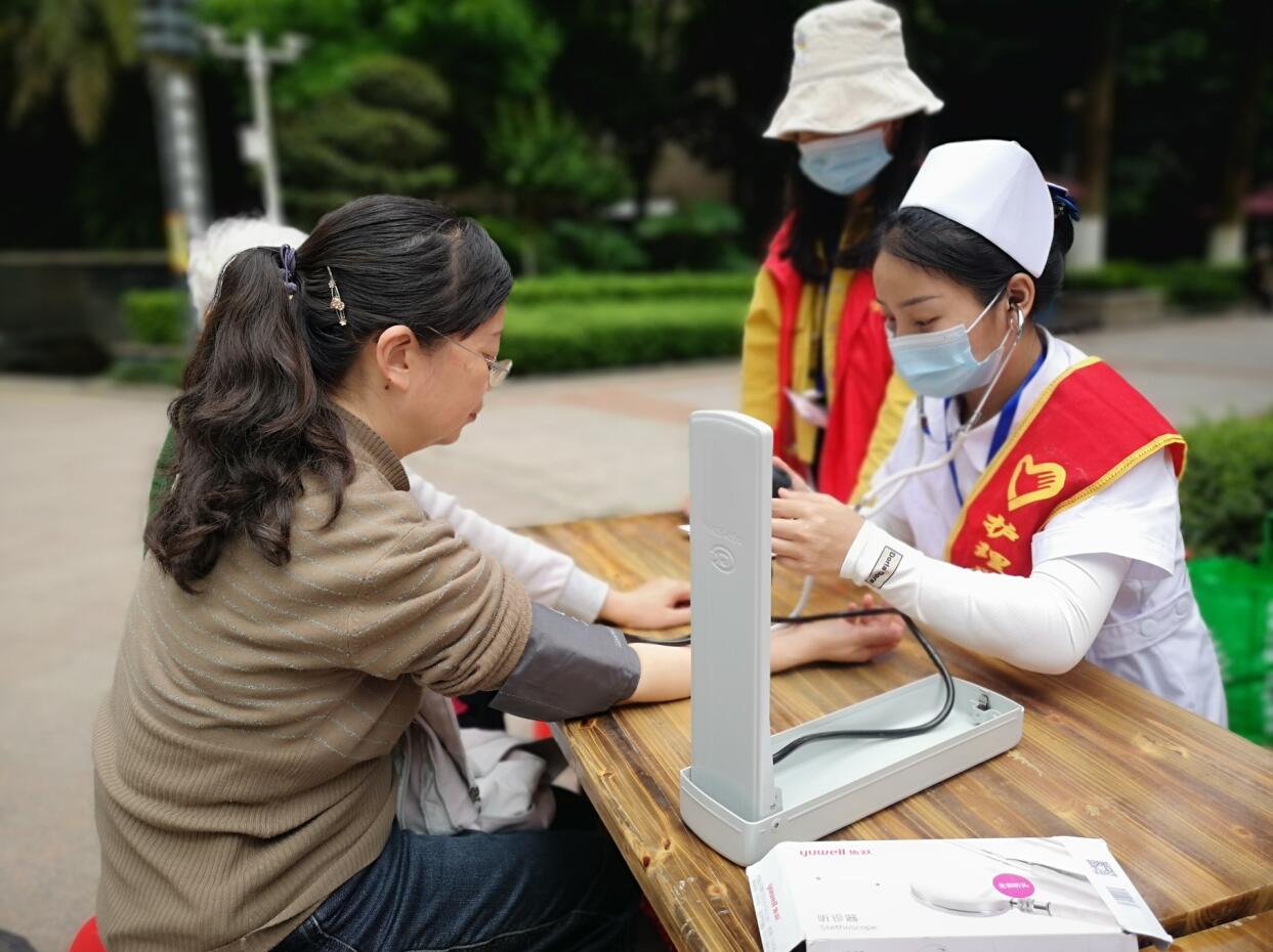 5月18日,护理学院“南丁格尔 ”志愿服务队在第一江岸展开了以“关注老化 爱在社区”为主题的爱心义诊及健康回访活动 。此次活动由彭丽媛,任冬梅两名老师带队,25名同学参与。