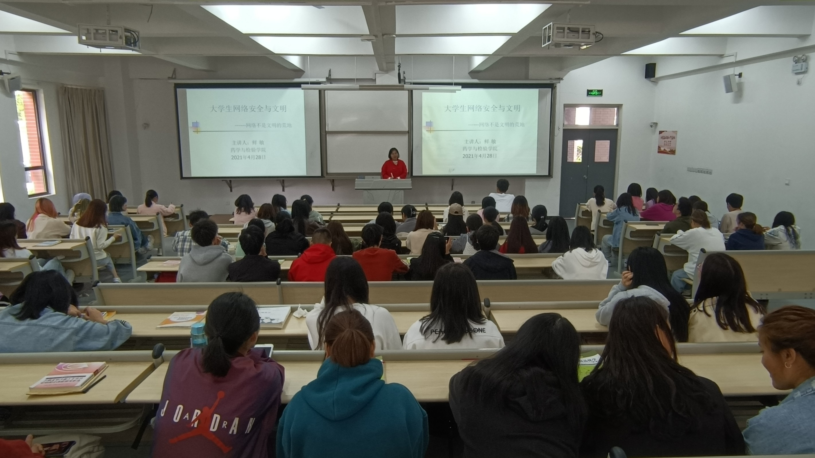 为了倡议同学们对网络使用安全知识的学习,加强使用网络的文明意识,减少因网络的使用带来的负面影响,2021年5月17日,在经开区1104教室开展《大学生网络安全与文明》安全教育活动,由药检院团总支书记鲜敏老师主讲,参加学生人数共计90余人。