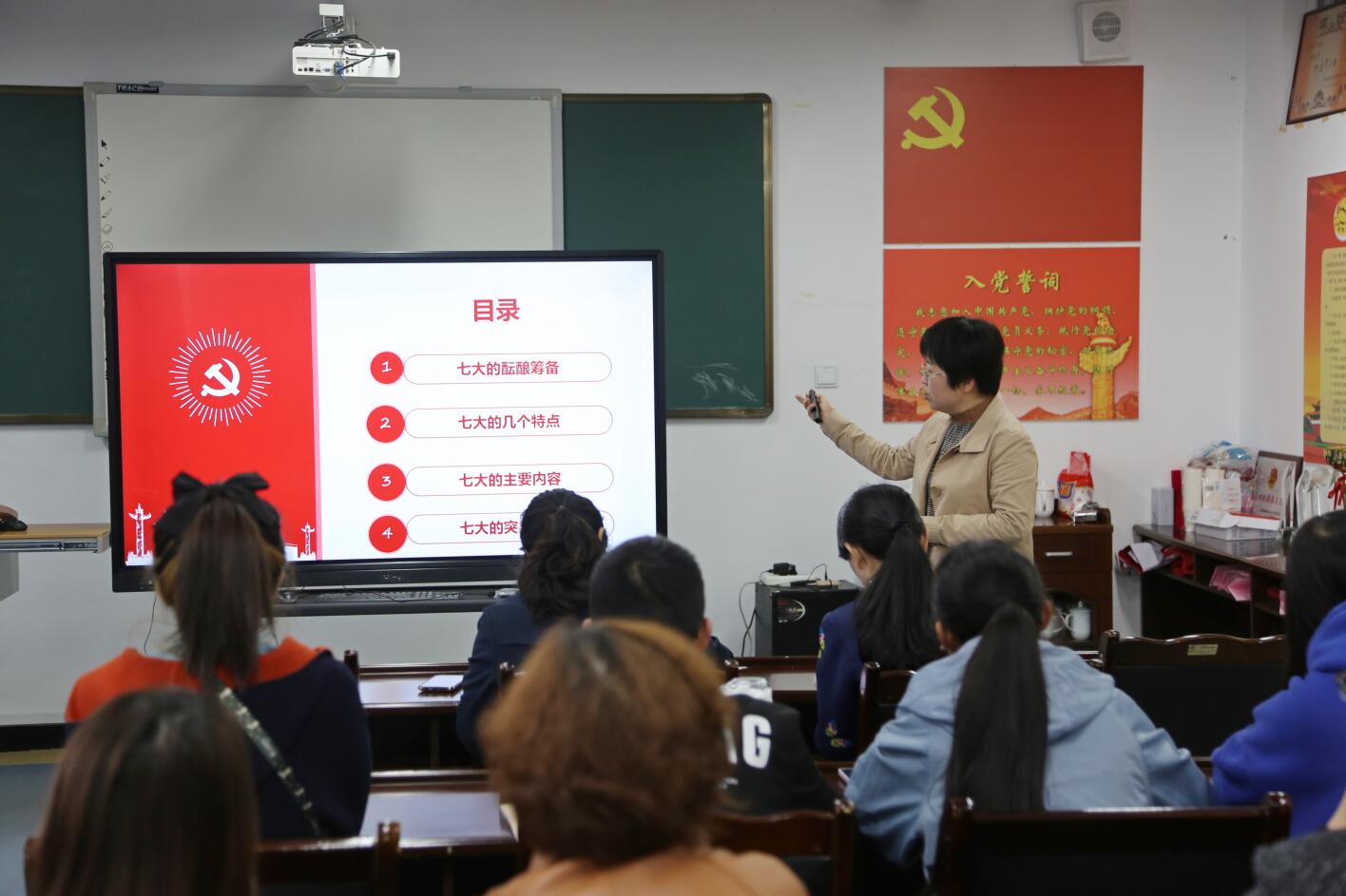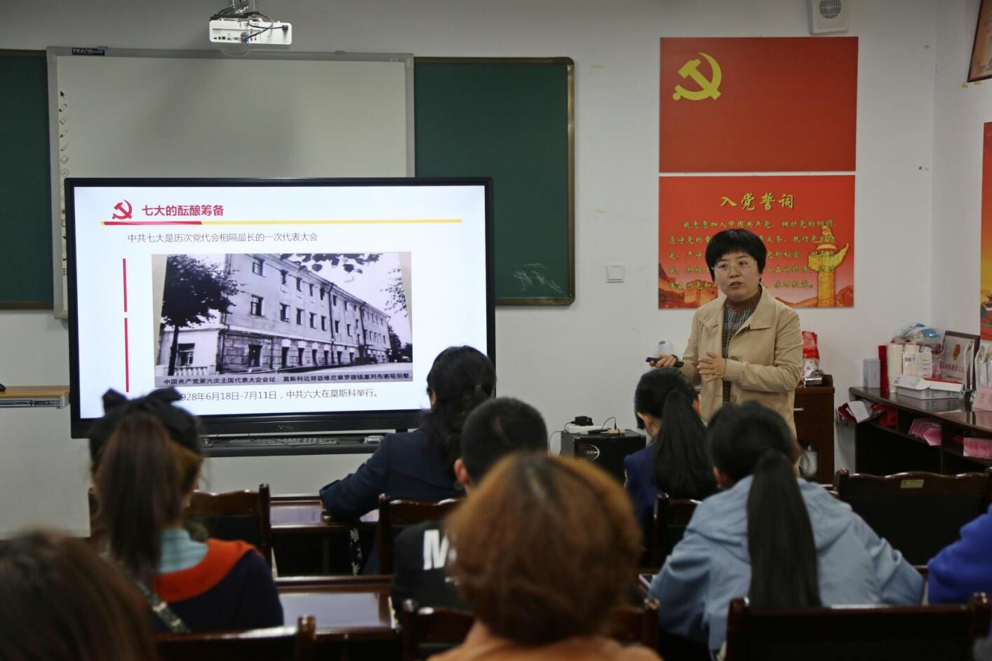 为深入学习贯彻习近平总书记在党史学习教育动员大会上的重要讲话精神,推进学习教育走实走深,4月20日,护理学院党总支在青年路校区实验实训楼607开展党史学习教育专题党课,特邀学院思政部王丹老师授课。护理学院党总支书记姚婕、副书记张翅,全体党员教师、学生入党积极分子代表50余人参加了专题讲座。
