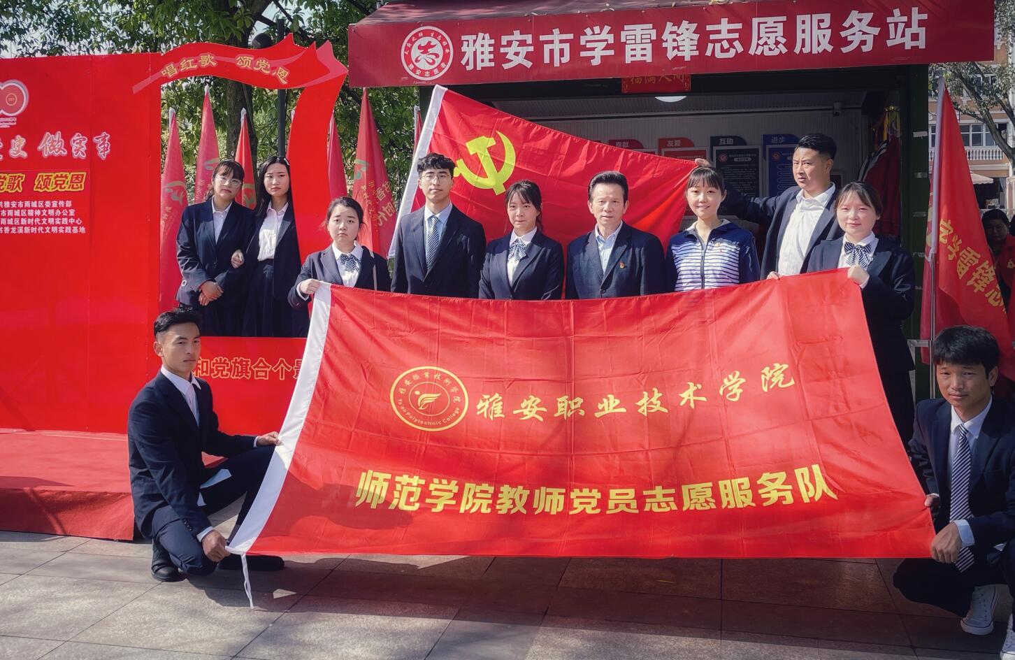4月21日,师范学院党总支副书记陆小路带领学生志愿者10人参加了由雅安市雨城区委宣传部、雅安市雨城区精神文明建设办公室、雅安市雨城区新时代文明实践中心、雨城区书香龙溪新时代文明实践基地举办的“‘学党史 做实事 唱红歌 颂党恩’我和党旗合个影”活动。
